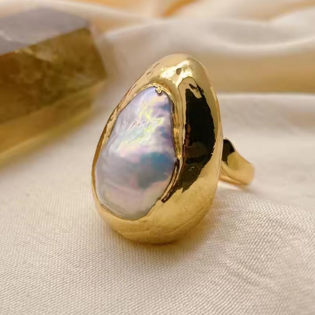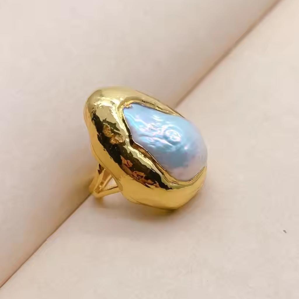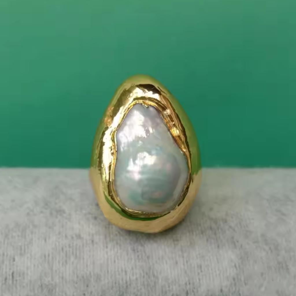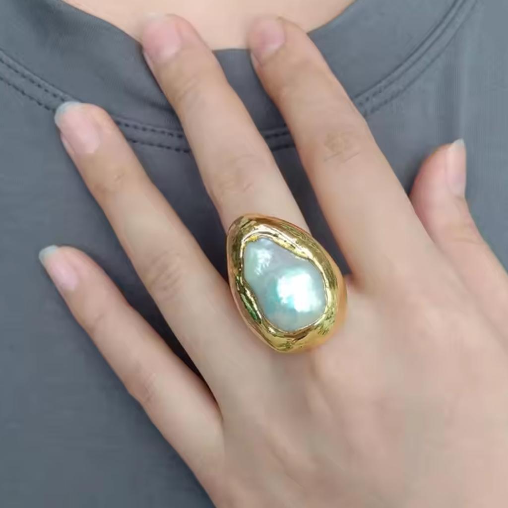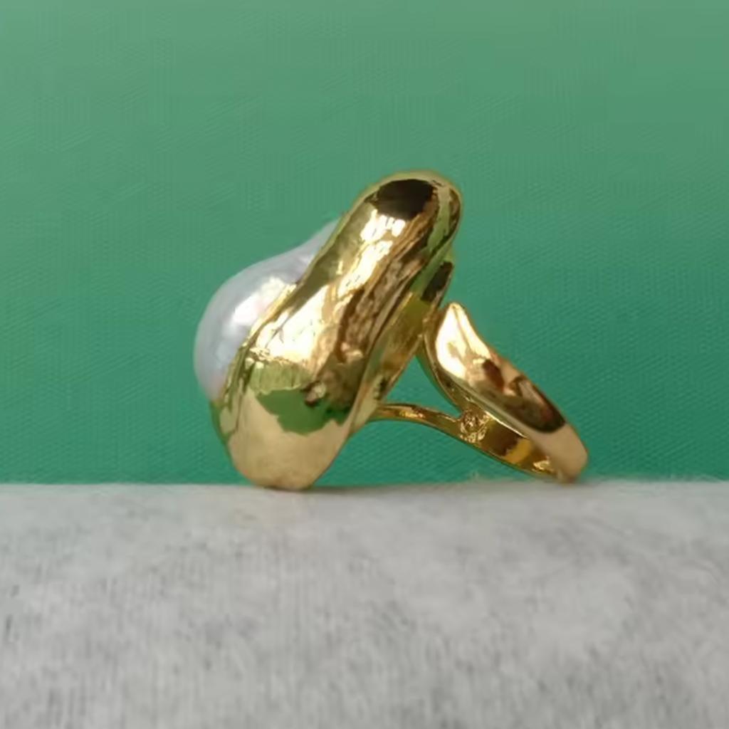 <新品>大粒 ホワイト 淡水養殖 バロック パール 真珠 指輪 リング 調節可能 結婚式 ダンス パーティー プレゼント ギフト