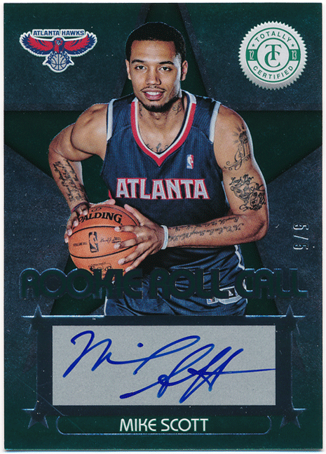 Mike Scott NBA 2012-13 Panini Totally Certified RC Rookie Roll Call Green Auto 5/5 ルーキーオート マイク・スコット ラストナンバー
