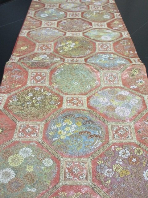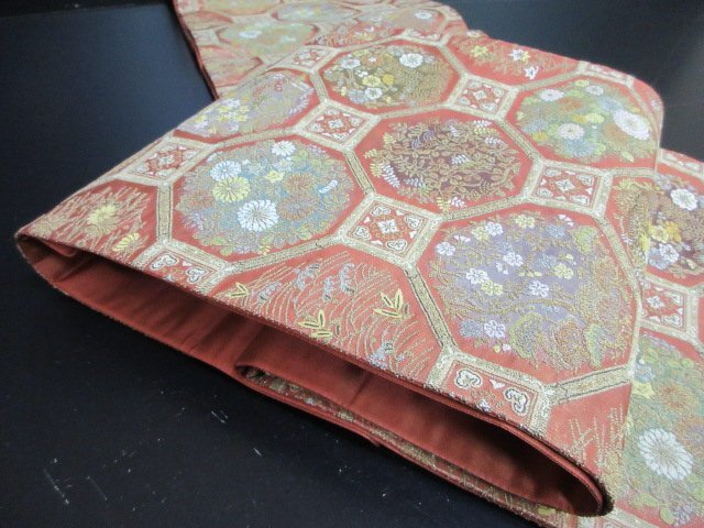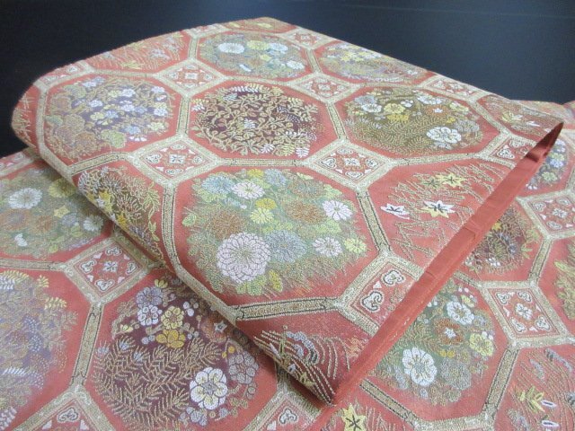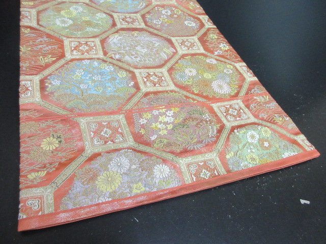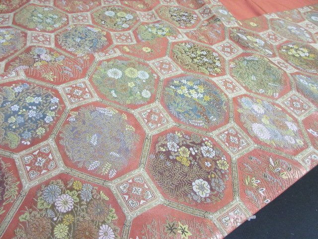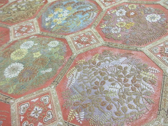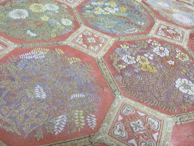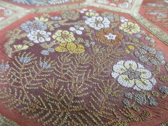 | 商品名 | 1円 良品 袋帯 正絹 和装 和服 蜀江文 草花 花柄 お洒落 六通柄 長さ438cm【夢職】★ |