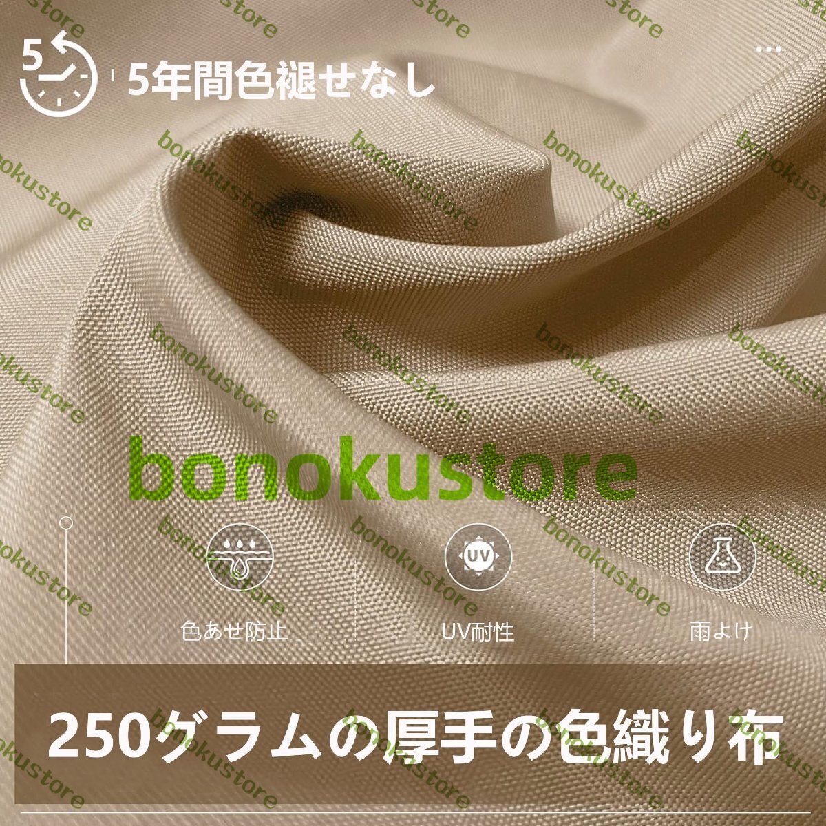 複合繊維コーティングを採用し、日光や雨にも耐え、5年間色褪せしません