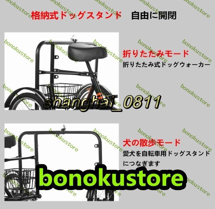 商品説明 ご覧いただきありがとうございます!★状態:新品未使用 名称:折りたたみ式三輪自転車(犬の散歩デザイン付) 色: 黒 三輪車の素材: 炭素鋼フレーム、アルミニウム ステンレス鋼ハンドルバー 三輪車のサイズ:三輪車の長さ:130CM、三輪車の幅:90CM、車輪の直径38C
