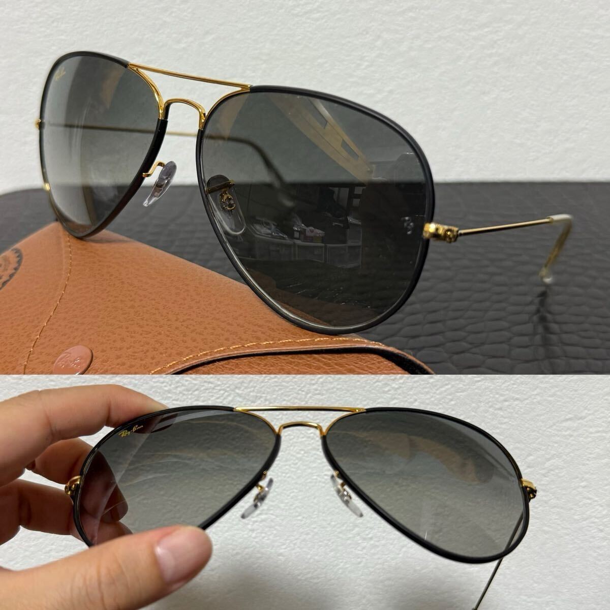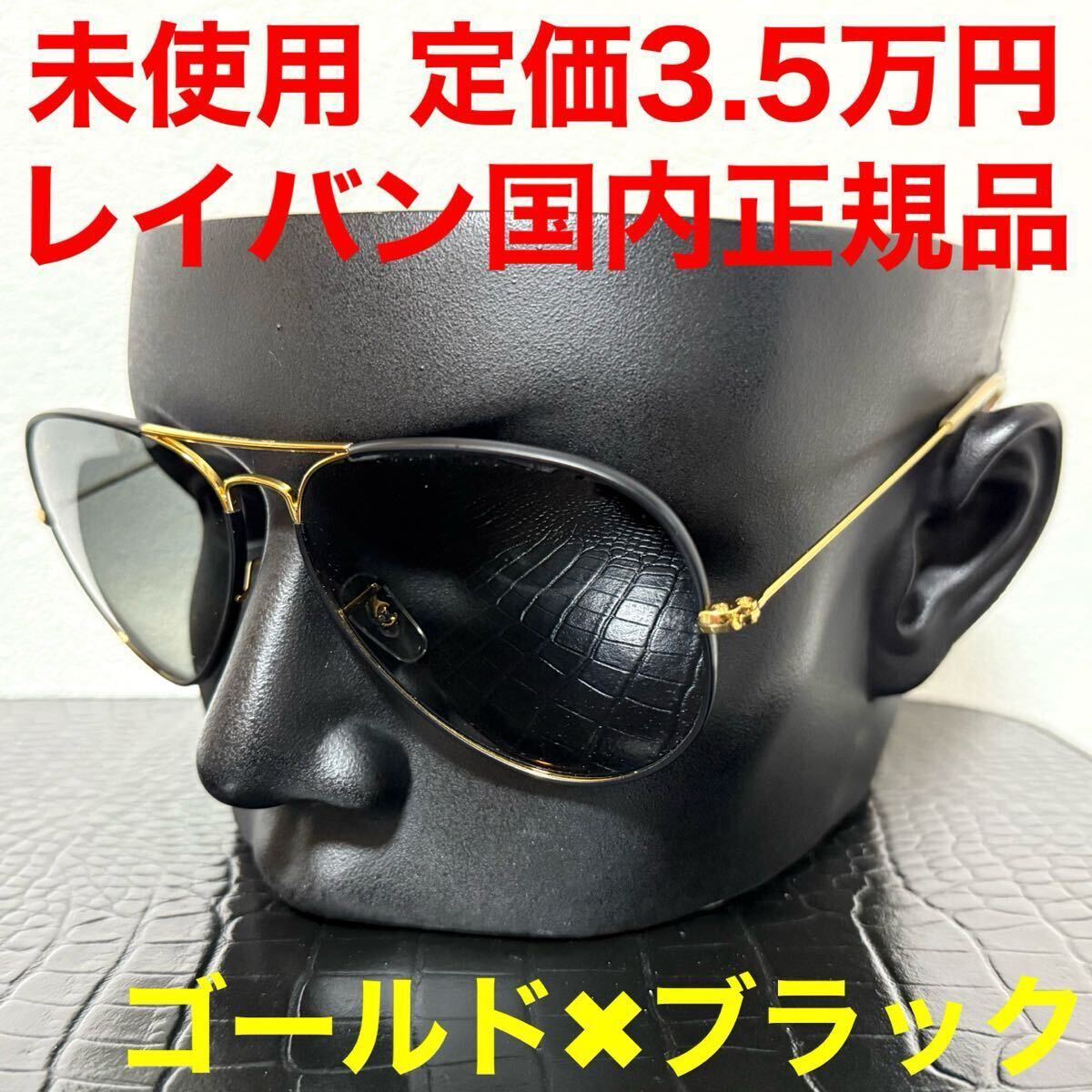 rayban レイバン 未使用 サングラス カラーアビエーター RB3025 ゴールド ブラック グレーグラデーションレンズ サイズ62
