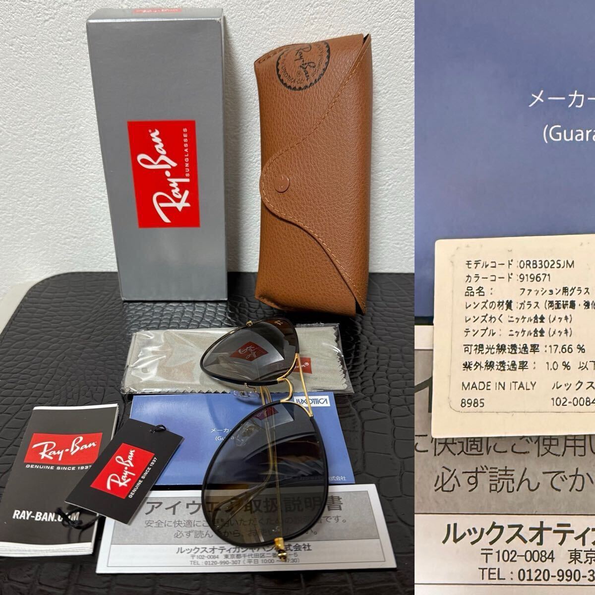 国内正規品の本物証明として、写真の通りルックスオティカジャパンのギャランティが付属します。