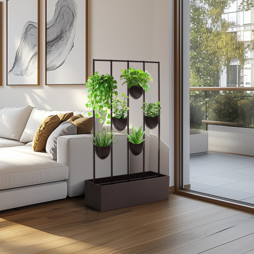 フェンス プランター付き 目隠し プランター付き 電着塗装 植木鉢付き 簡単設置 92*36*160cm 園芸用品 花立て 庭園 おしゃれ【 ブラウン】