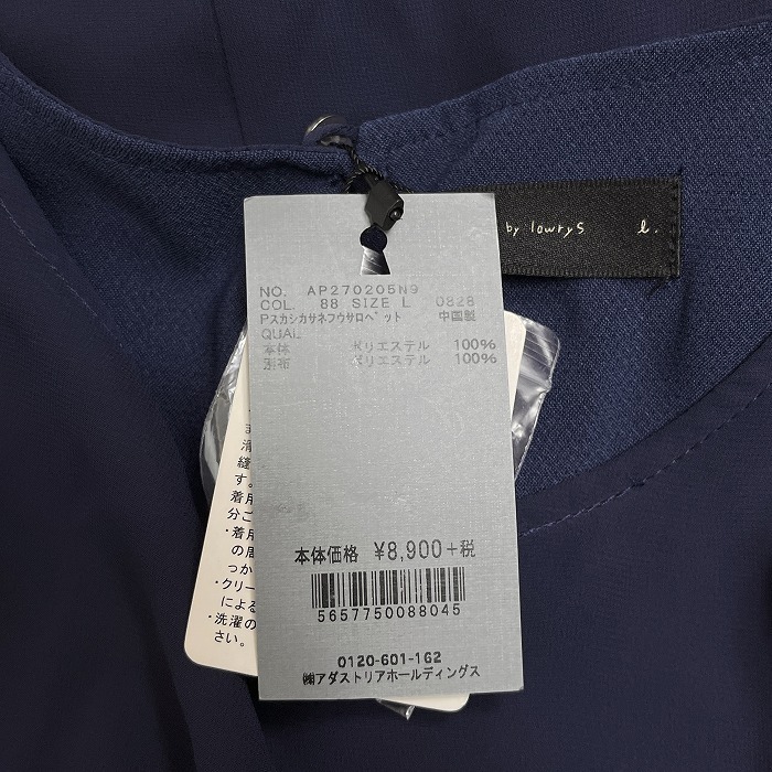 | 商品タイトル | アパートバイローリーズ 【新品】 パンツワンピース 内側がノースリーブ 無地 背中スリット ウエストゴム ポリ100% L ネイビー レディース |