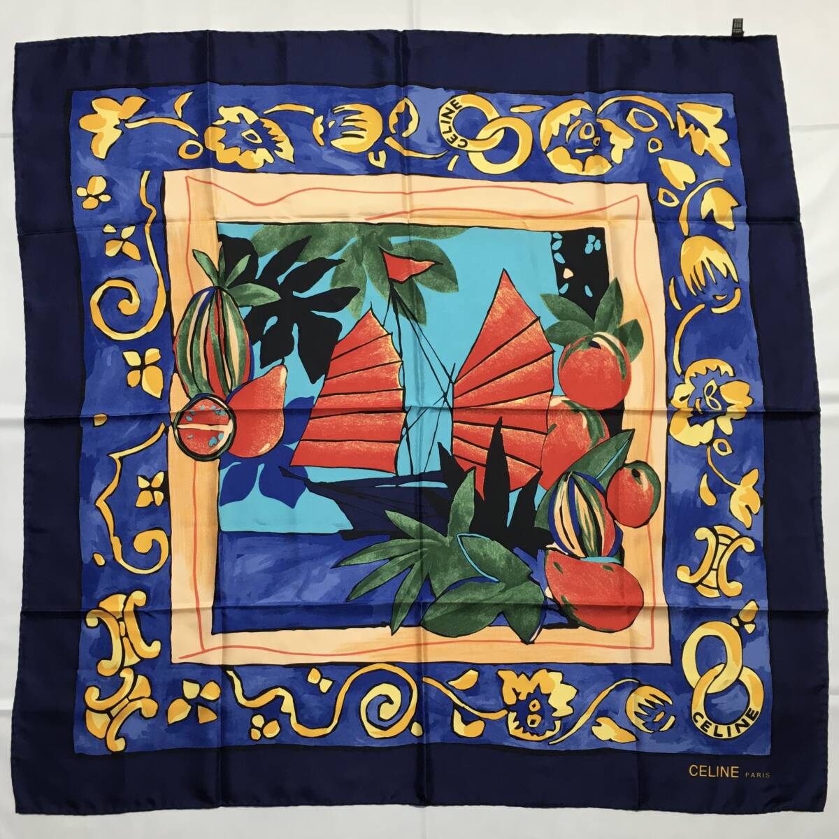 78B298| 美品 【 ブランド名 】CELINE セリーヌ 【 カテゴリ 】大判 スカーフ 【 素材 】シルク100% 【 カラー 】マルチカラー ネイビー 【 その他 】トリオンフ タグあり 【 付属品 】- 【 サイズ 】(cm) ※実寸値 縦×横:87×86 《 備考 》 ・出品している商品は鑑定基準を全てクリアした正規品になります。コピー品の類は一切取り扱っていませんのでご安心ください。 ・中古品は商品の状態に合わせて価格を決めていますので低価格の場合もございますが正規品に間違いありません。 ・商品の状態につきましてはこれまでの経験に基づき評価させていただいておりますが、あくまで個人の主観となりますので神経質な方は購入をお控えください。 ・出来る限り現物の状態が分かるように出品しておりますが記載のない不明点等ありましたらお気軽にコメントいただければと思います。