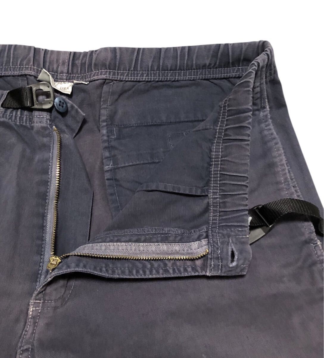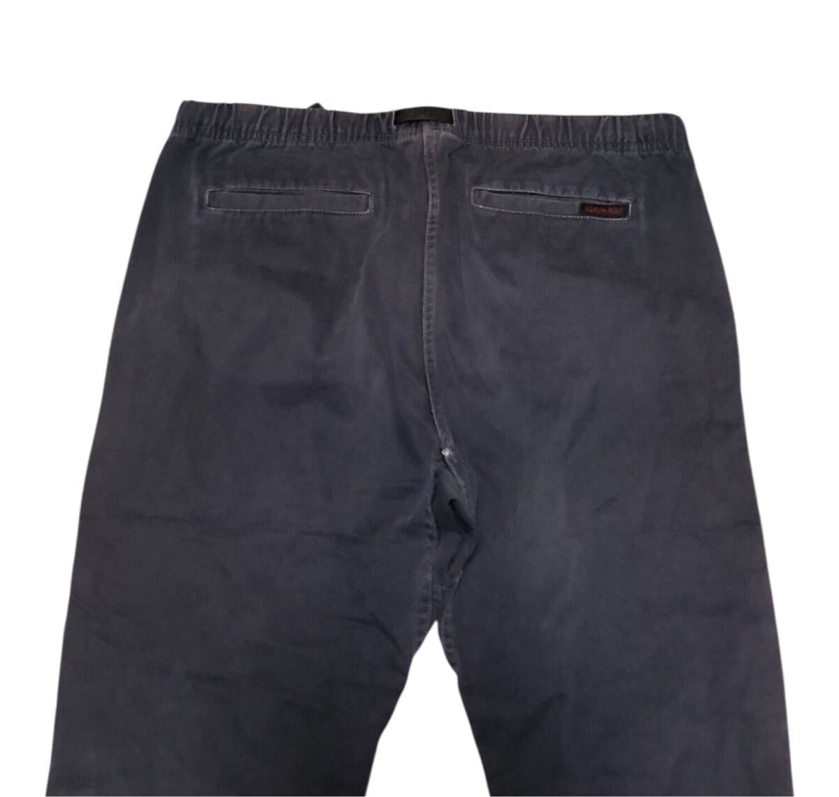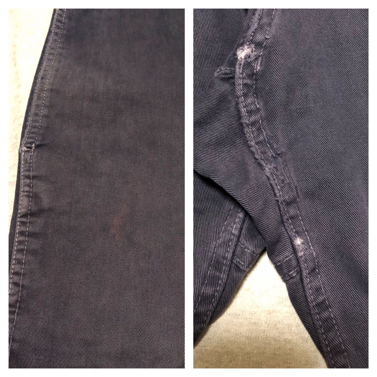 少し毛羽立ち、少し色落ちがあります。股下にスレがあります。