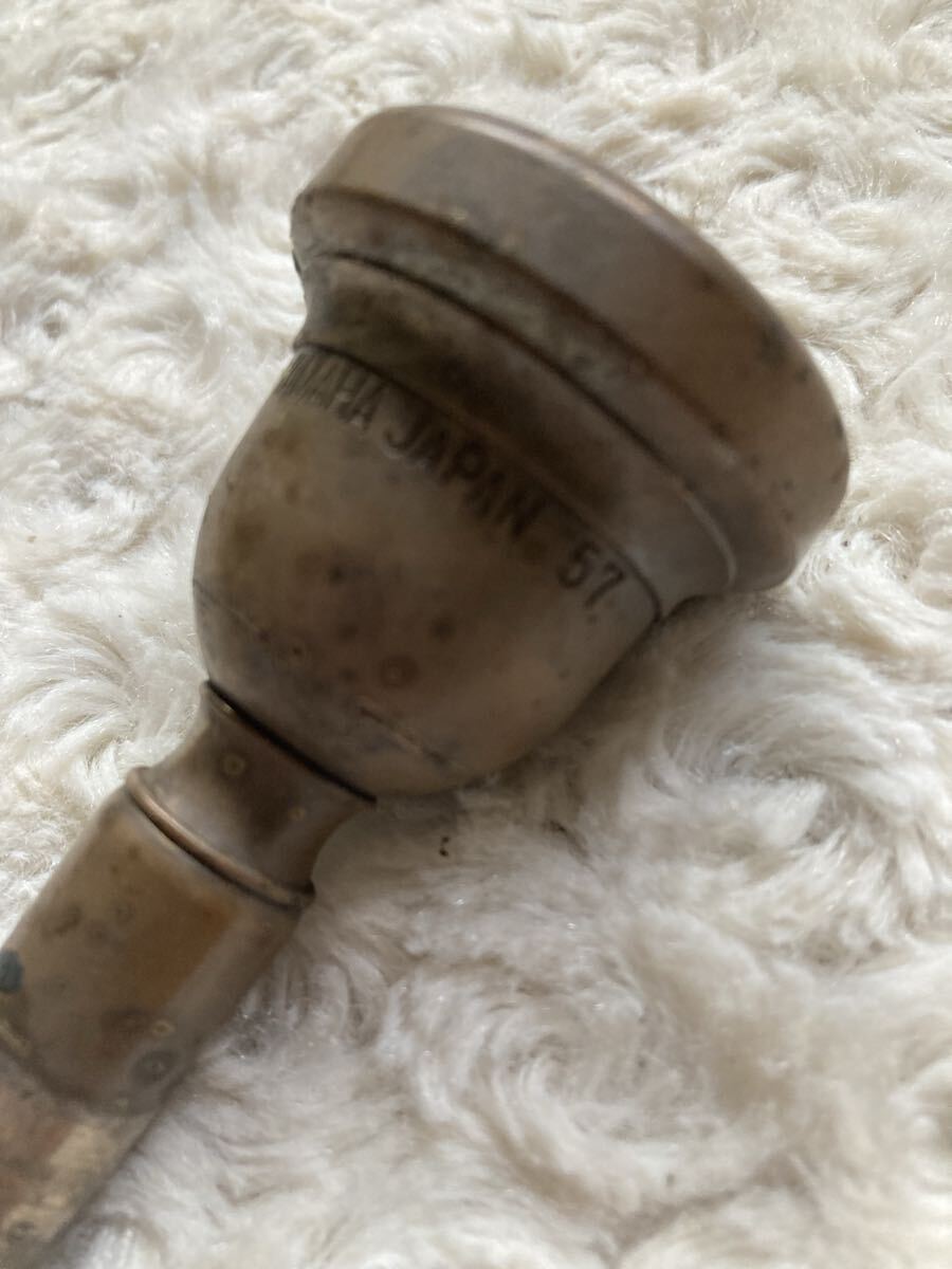 YAMAHA JAPAN57 と刻印あります。おそらくトロンボーン用でしょうか。詳しいことがわからないのと変色著しいので、詳しい方写真で状態などご理解いただける方ノークレームノーリターンでお取引よろしくお願いします。