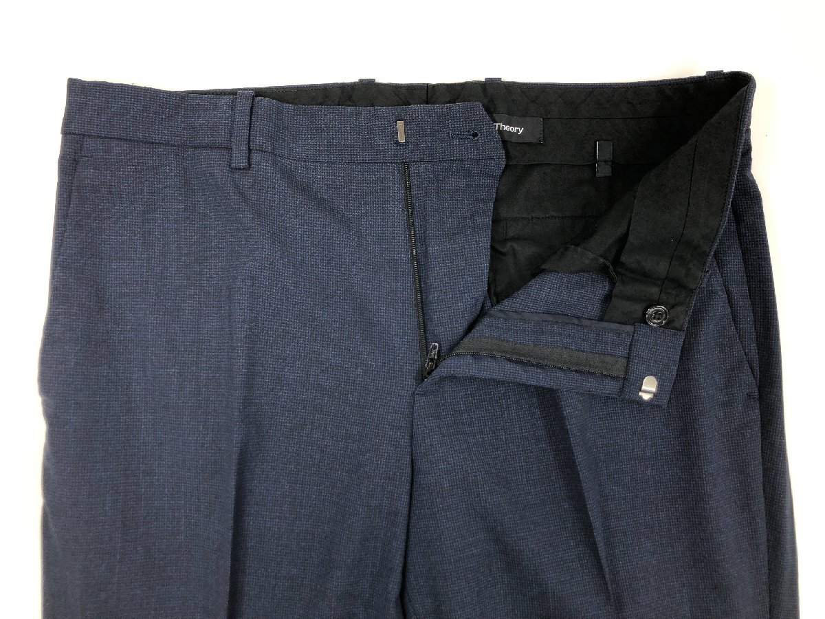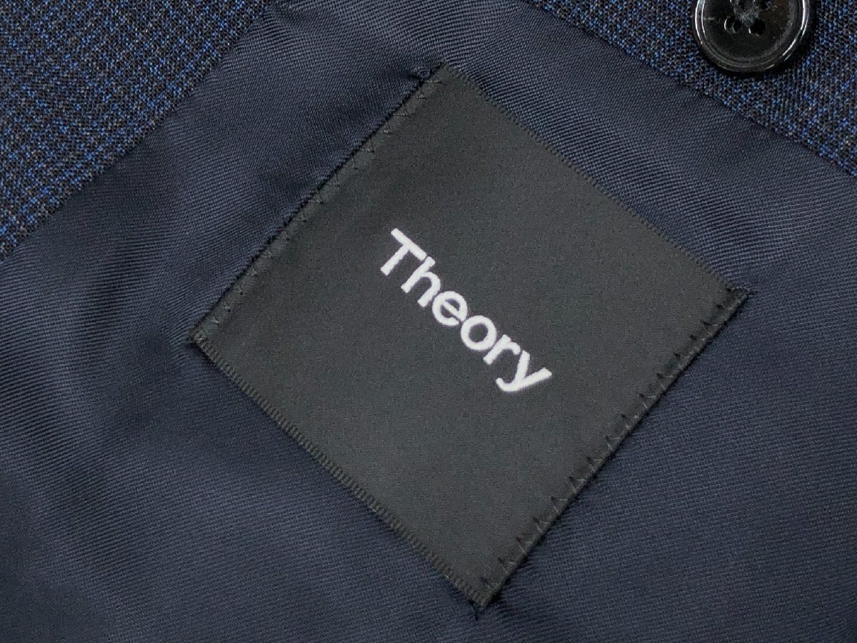 美品【セオリー Theory】シングル2ボタン 伸縮性 セットアップスーツ (メンズ) size38R/32 ネイビー系 ナチュラルな織柄◇32RMS2527◇