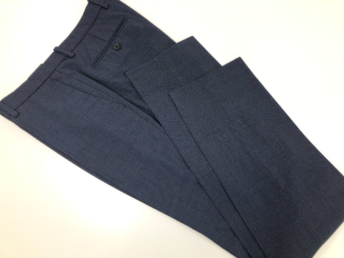 ・スラックス・・・ウエスト実寸約86センチ(3センチ出し、4センチ詰め可能)、股上約27センチ、渡り幅約32センチ、股下約81センチ、総丈約105センチ、裾幅約18.5センチ、シングル仕上げ(最大で4センチ出しが可能です)