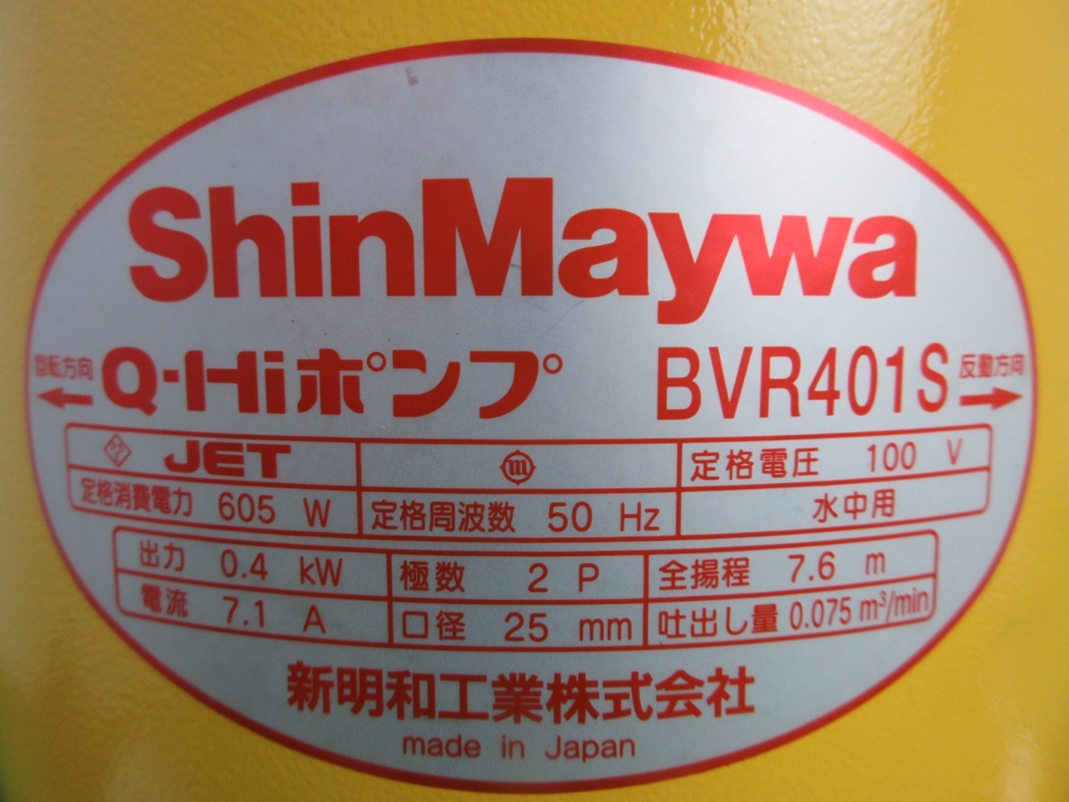 未使用品【 新明和 / ShinMaywa 】 BVR401S Q-Hiポンプ