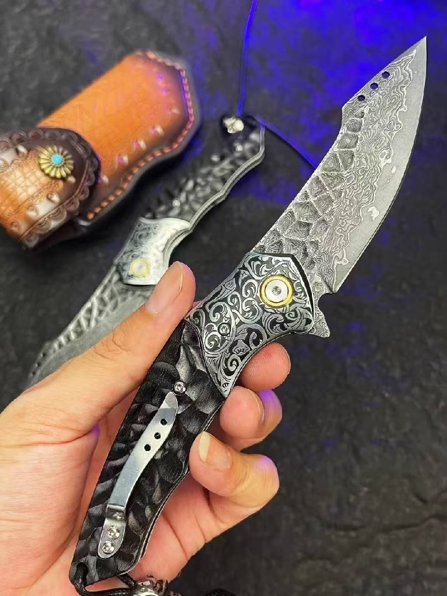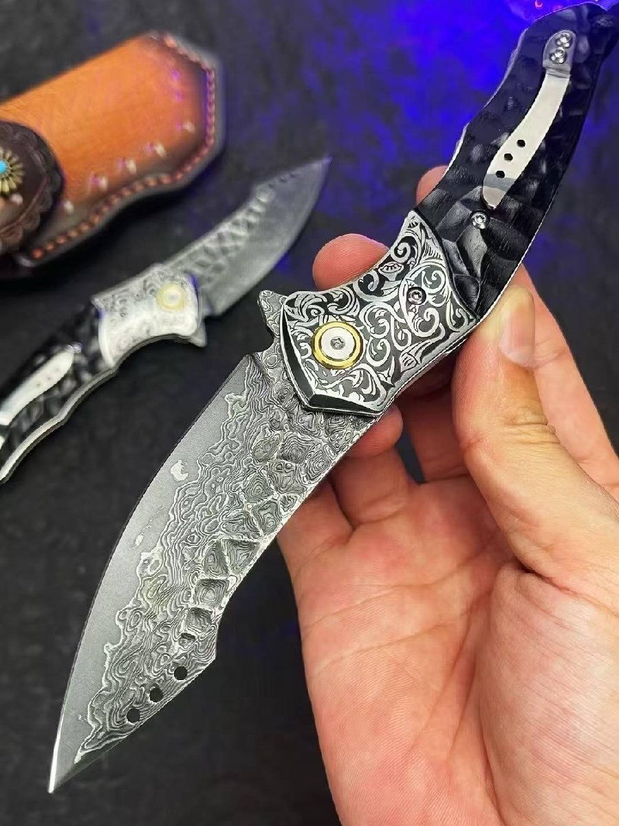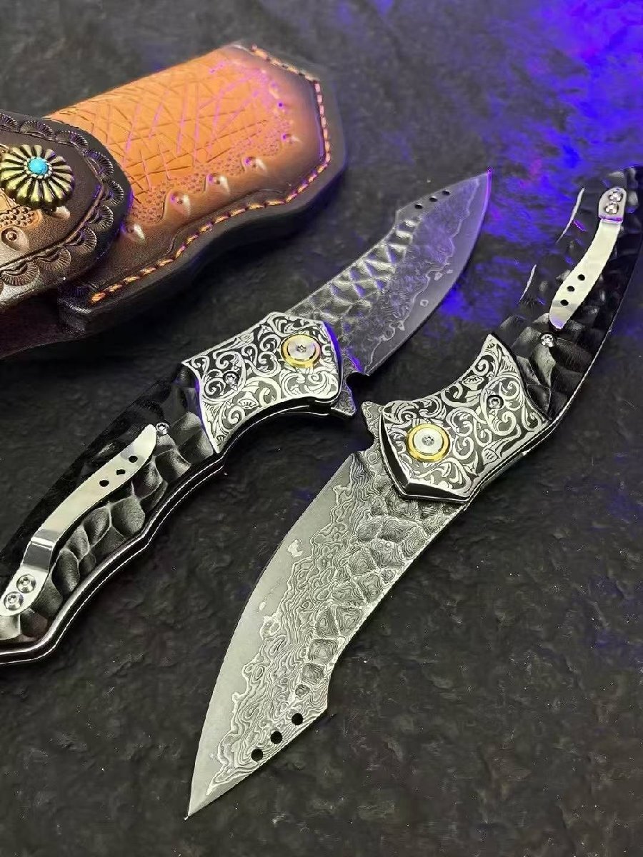 高品質 サバイバルナイフ VG10 全長19.5cm 薪割り 本革 アウトドア ハイキング 野外登山キャンプ