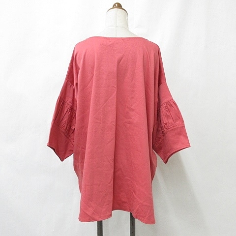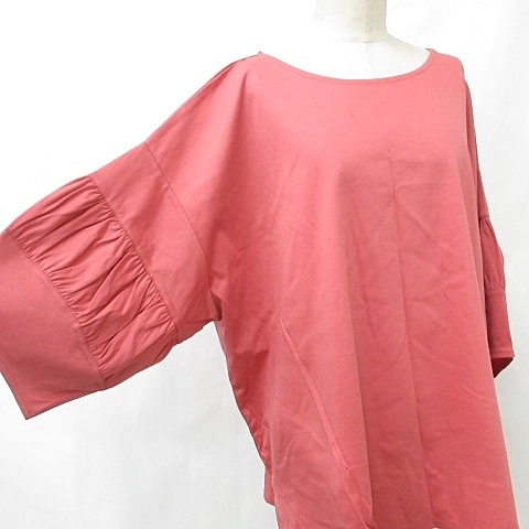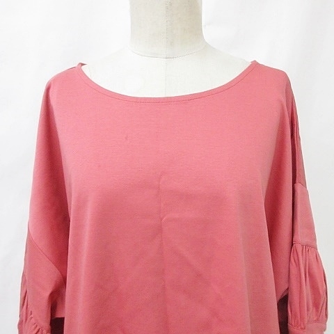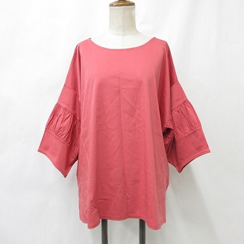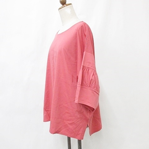 未使用品 カットソー Tシャツ 七分袖 丸首 タック 綿 大きいサイズ ピンク 5L レディース