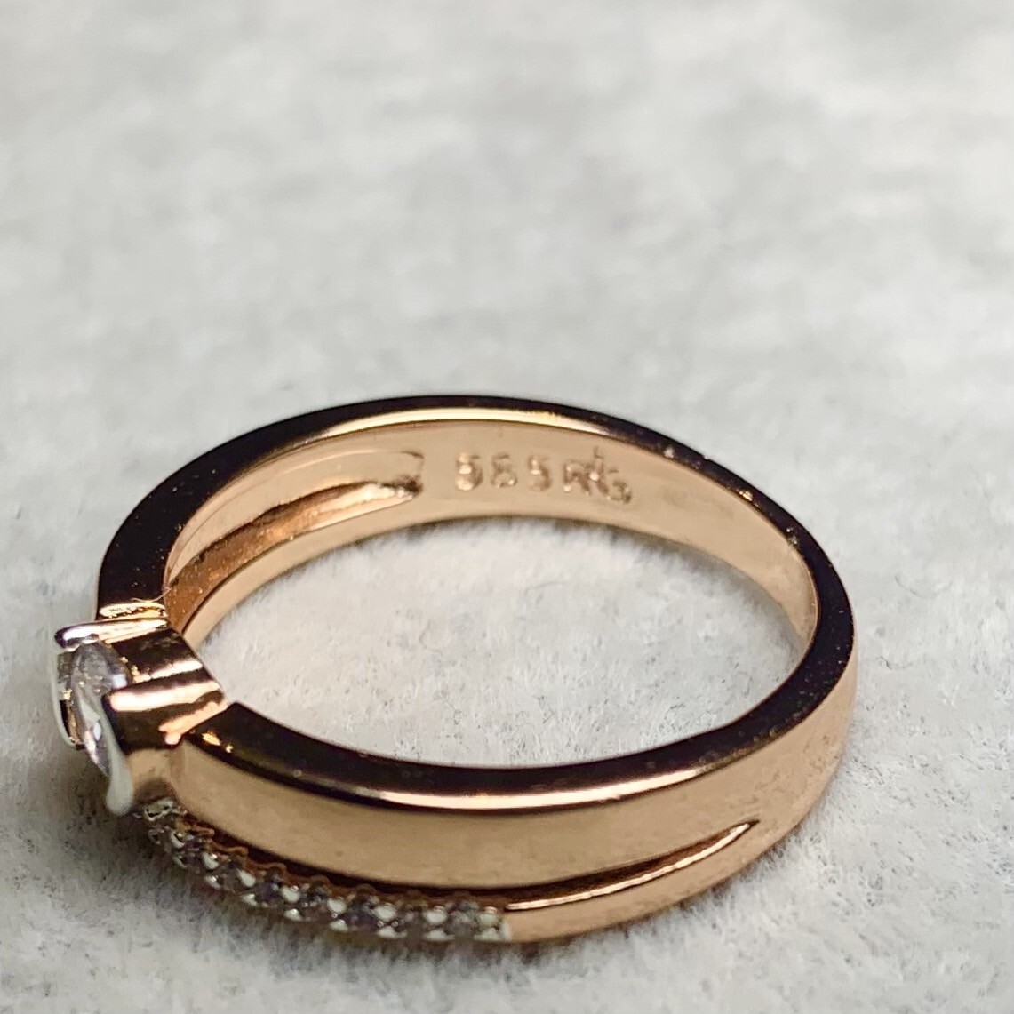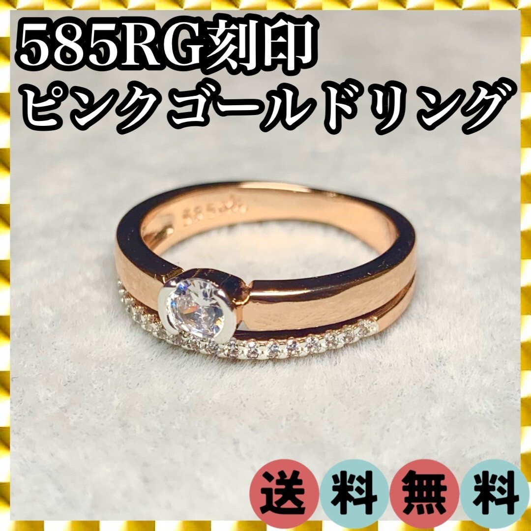*ピンクゴールドの柔らかな輝きに、585RG刻印が施された高級感あるリング。