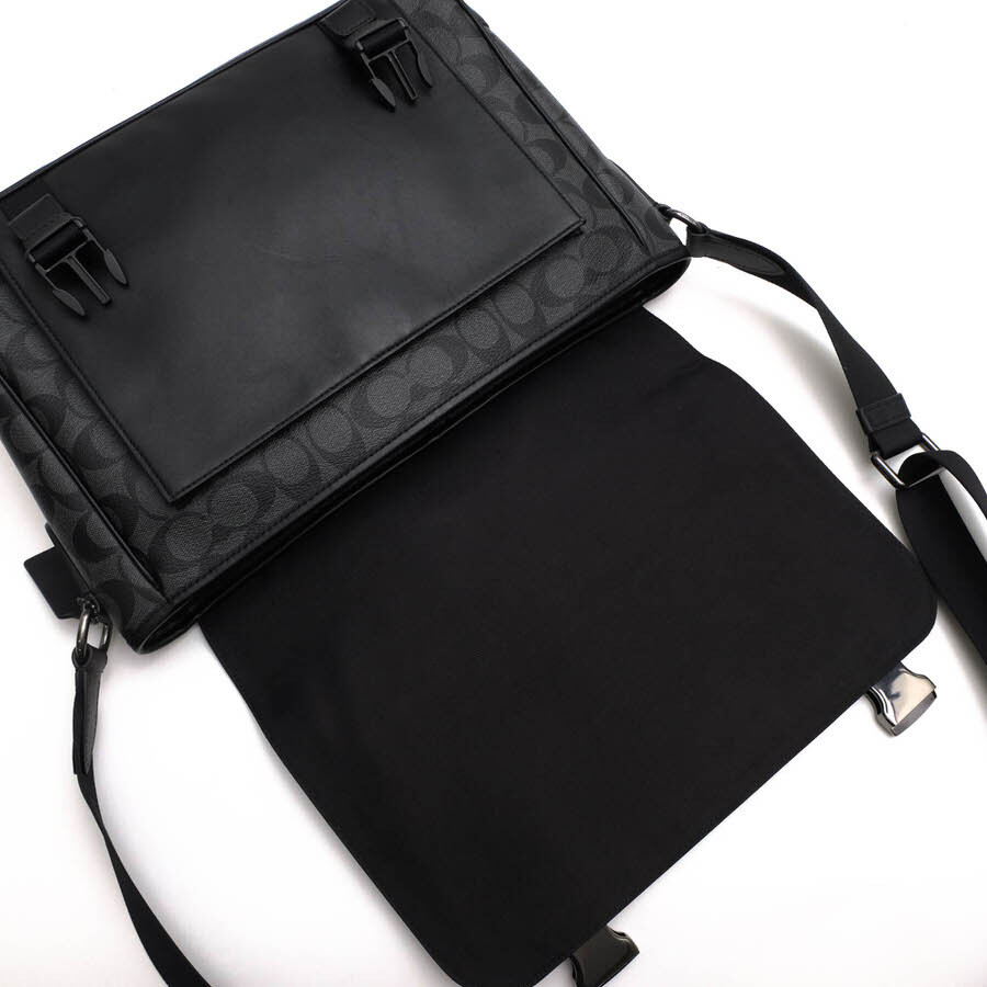 ◆ブランド名 COACH ◆サイズ詳細 横幅 約32cm、縦幅 約28cm、マチ 約10.5cm、ショルダー長さ 約138cm ◆仕様 外側:ファスナーポケット×1、マグネットポケット×1、内側:ファスナーポケット×1、オープンポケット×2、ショルダー長さ調節可能 ◆特徴 シグネチャー柄 メッセンジャーバッグ ◆型番 C2793 Track Messenger In Signature Canvas ◆素材 上質なPVC×革レザー ◆素材詳細 シグニチャーコーテッドキャンバス × 牛革 ◆色 ブラック 黒 ◆商品状態 中古品-非常に良い |