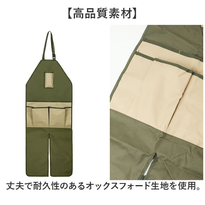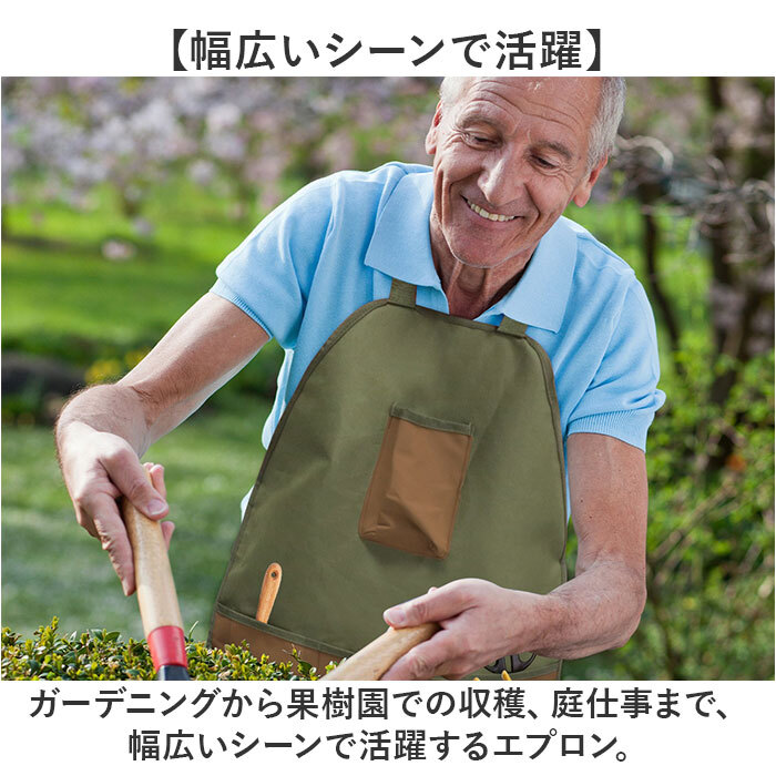 | 商品説明 | ・・【作業効率UP!便利なエプロン】 ・ガーデニングやDIYに最適なポケット付きエプロン ・ ・【高品質素材】 ・丈夫で耐久性のあるオックスフォード生地を使用。 ・ ・【首と腰のベルト調整可能】 ・バックルスタイルで、自分のサイズに合わせて調整できる。 ・ ・【6つのポケット】 ・2つの収納バッグと4つのツールバッグで道具をしっかり収納。 ・ ・【幅広いシーンで活躍】 ・ガーデニングから果樹園での収穫、庭仕事まで、幅広いシーンで活躍するエプロン。 |