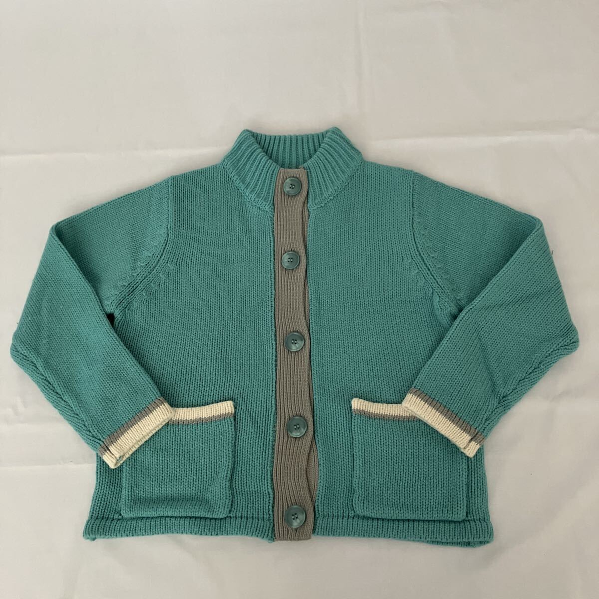 カーディガン ニット 水色 グレー 白 ボタン大 ショート M-Lサイズ 未使用 美品