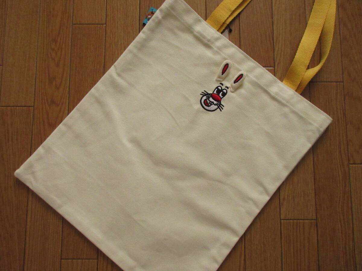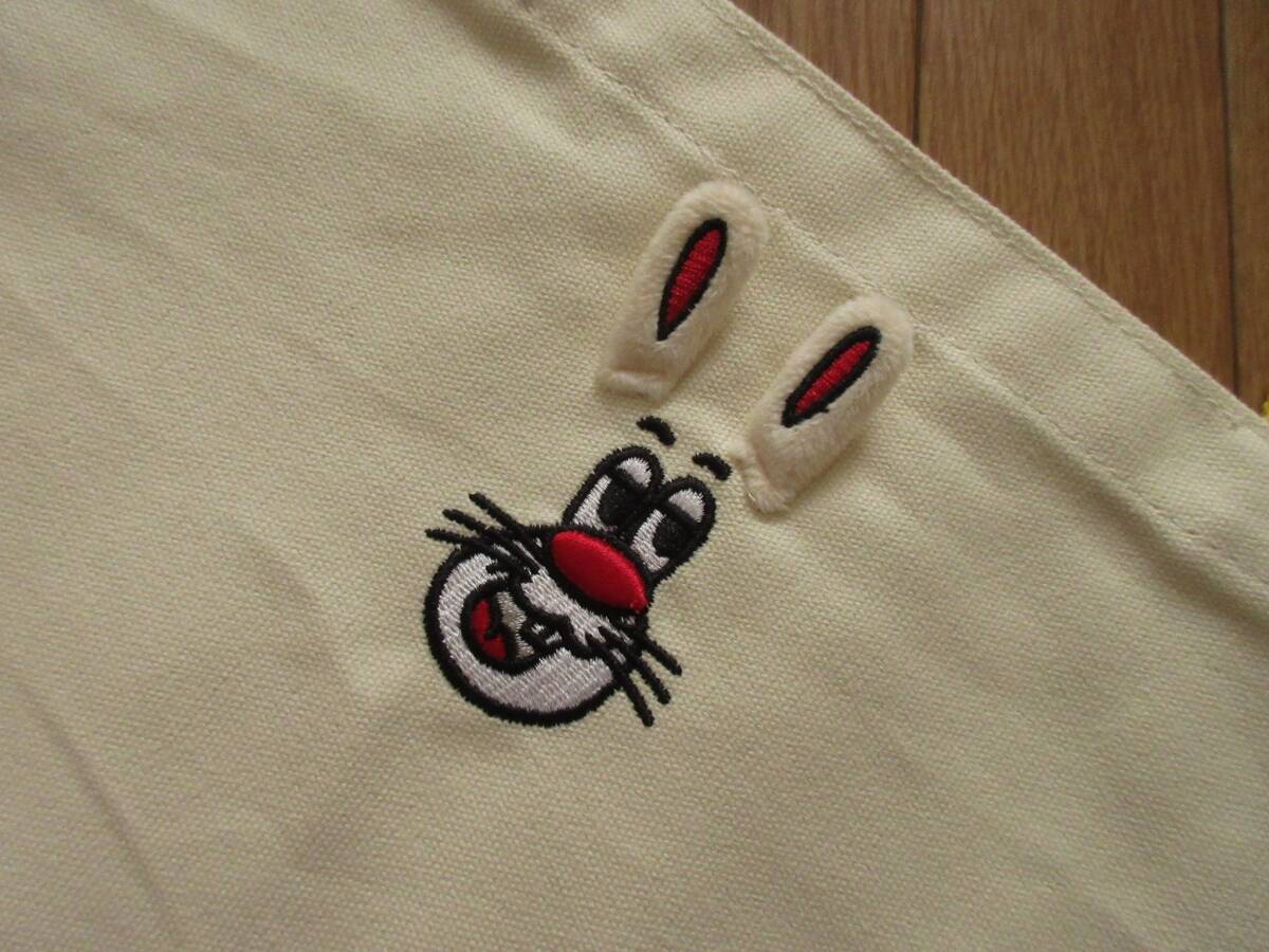 裏面はキャンバス地で上部にキャラクターの刺繍が施されています。