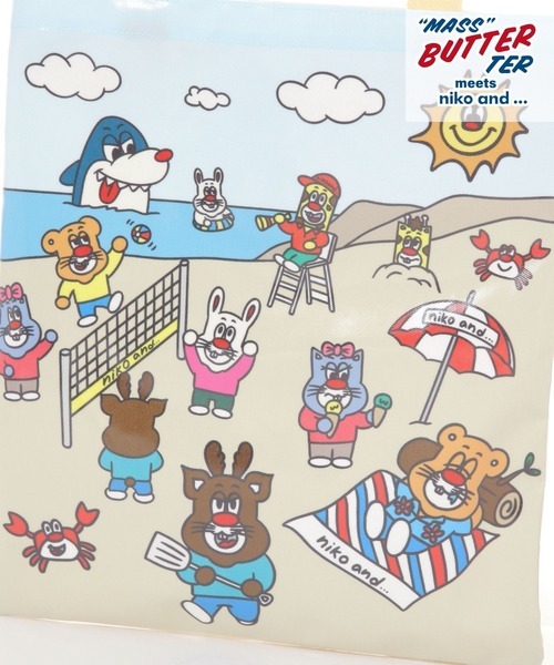 niko and... ニコアンド バターマスター コラボ トートバッグ (ビーチ) カフェ Butter masster バッグ アニマル くま うさぎ