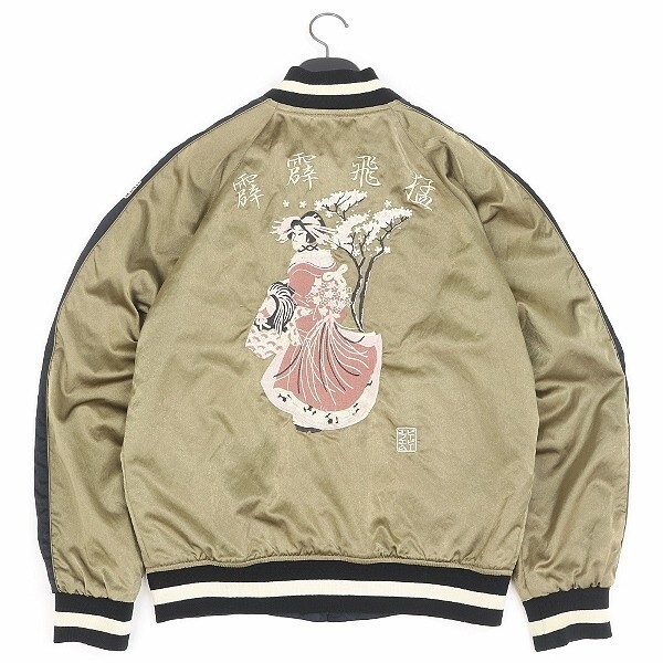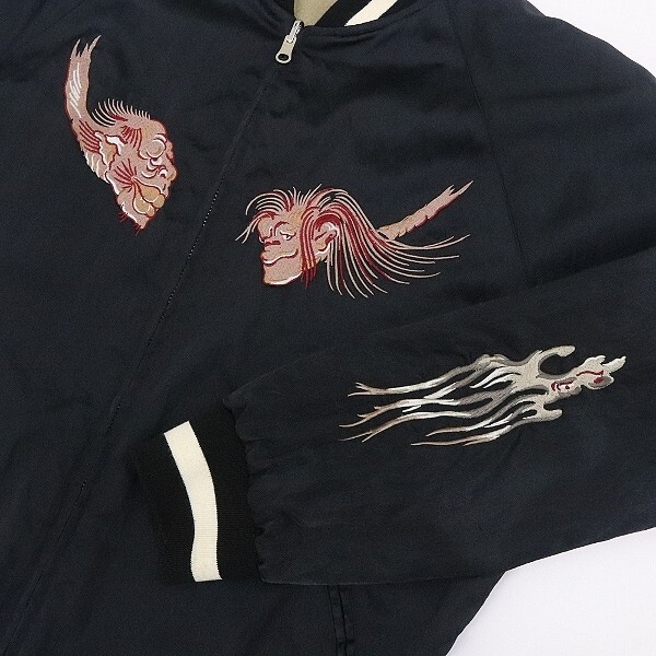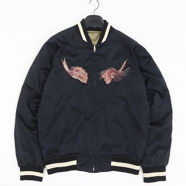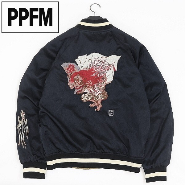 | 【HA427】◆PPFM ピーピーエフエム 妖怪 和柄 刺繍 リバーシブル スカジャン ジャケット ブラック×カーキ | |