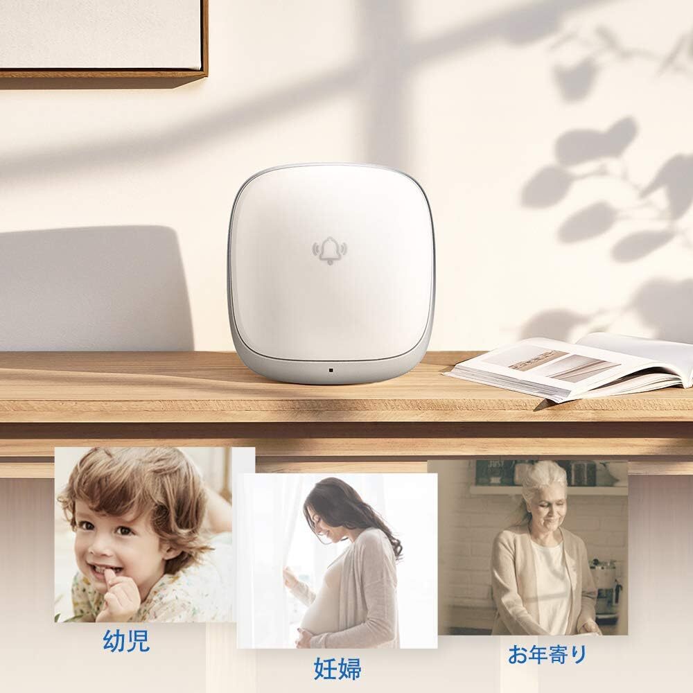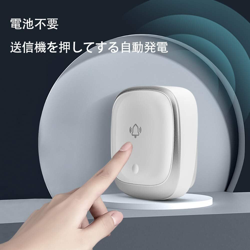 耐久性抜群 ワイヤレスチャイム 玄関チャイム 電池不要 自動発電 音と光で呼び出
