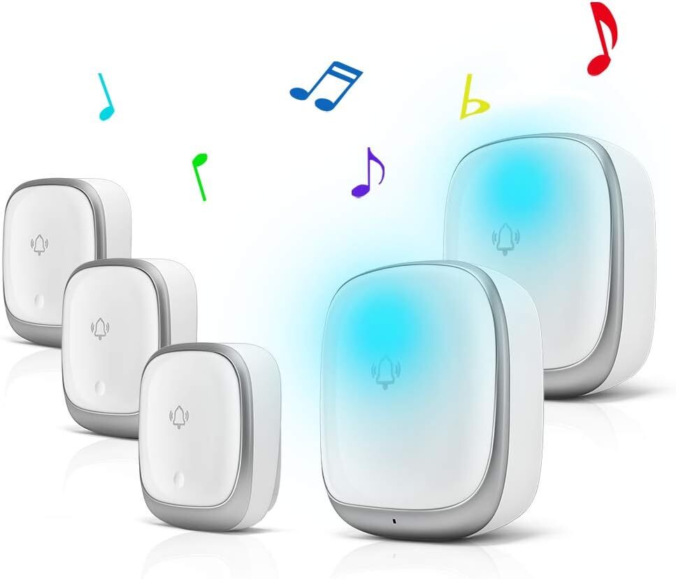 玄関チャイムの発信機を押すと、7色のLEDランプが点滅し音が鳴ることで告知します。特に、高齢者や耳に障害のある人にとっては非常に便利です。38曲からメロディを選べます。