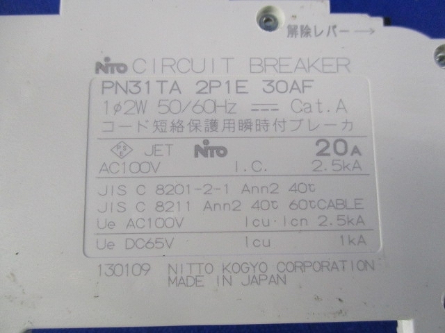 プチスリムサーキットブレーカ 2P1E20A(5個入) 日東工業 PN31TA