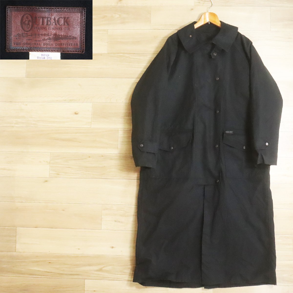 *6R/R8.8-1 OUTBACK TRADING CO. オイルドコート ダスターコート ライディングコート ワックスコットン ロングコート M ブラック