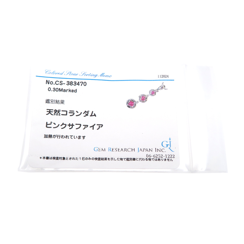 | 品名 | ※石刻印R 0.30ct ピンクサファイア ネックレス K18ホワイトゴールド |