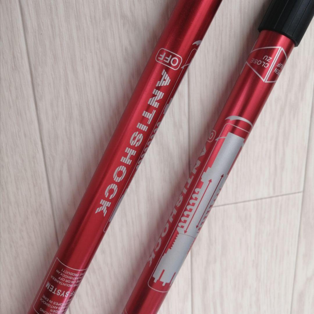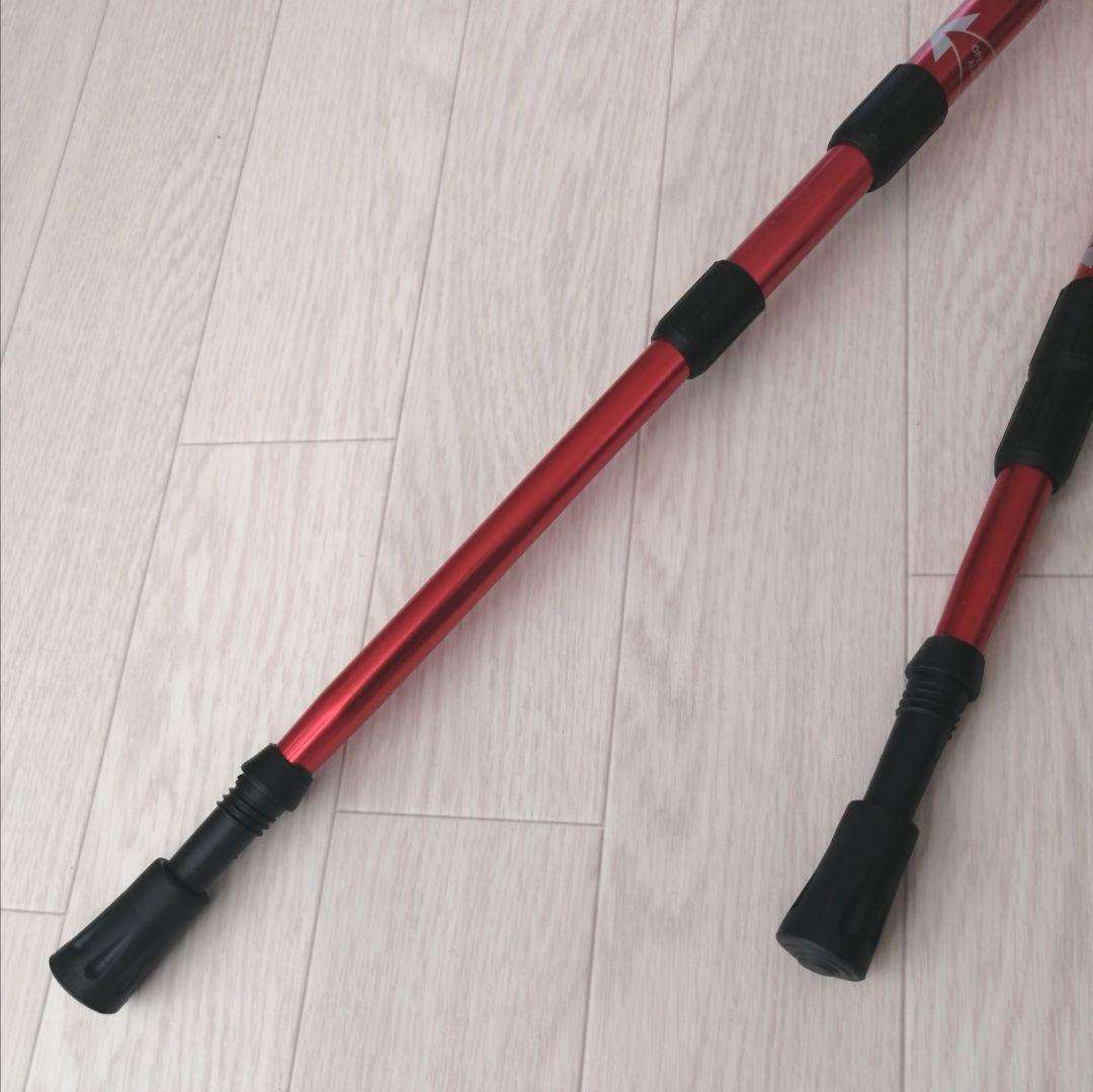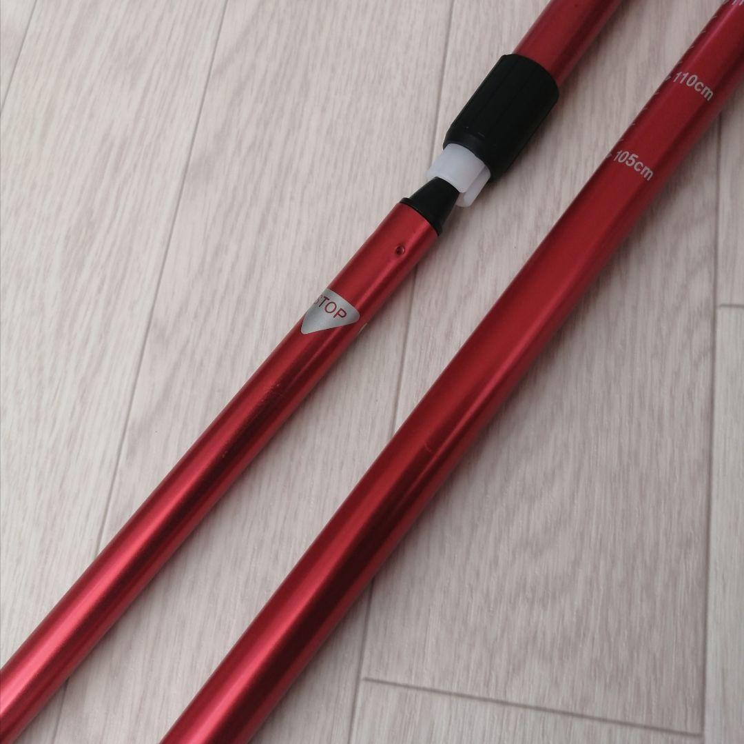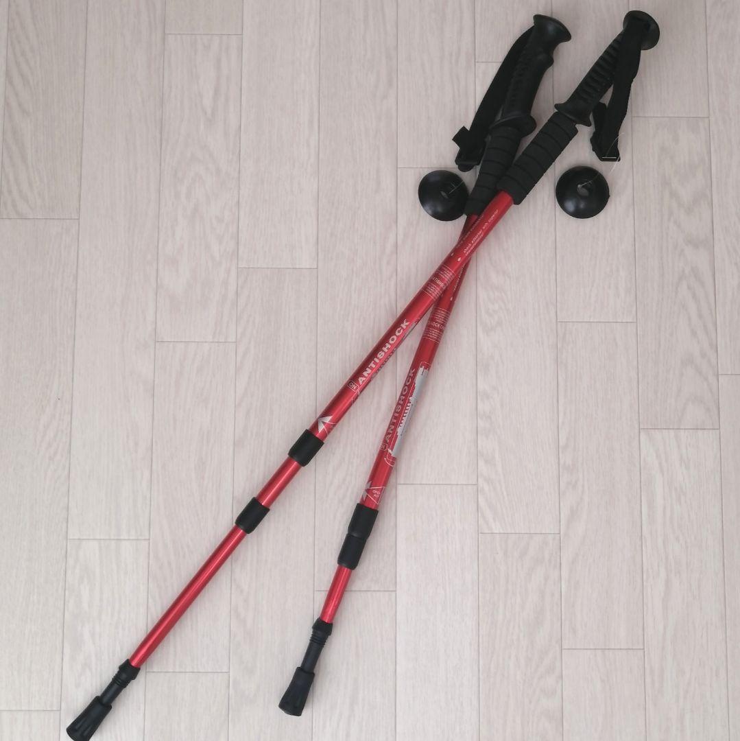 レッド ラバーグリップ 2本セット アルミ製 トレッキングポール ステッキ 登山杖 キャンプ アウトドア