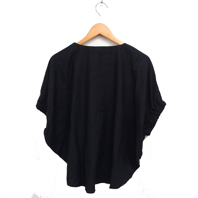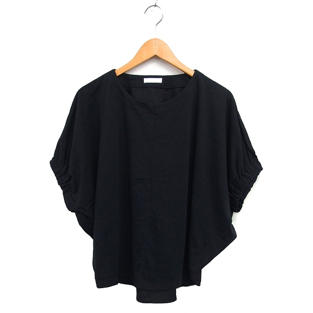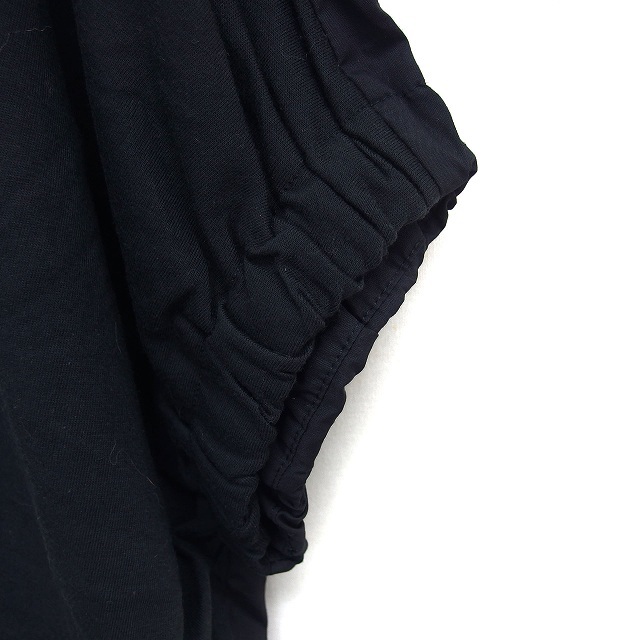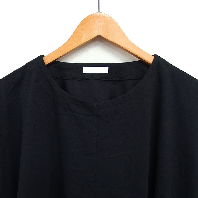 ドレスキップ DRESKIP ラウンドヘム ワイド カットソー バックロング 切替 ボートネック 五分袖 F 黒 ブラック /NT34 レディース