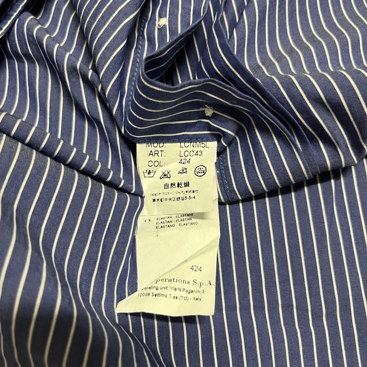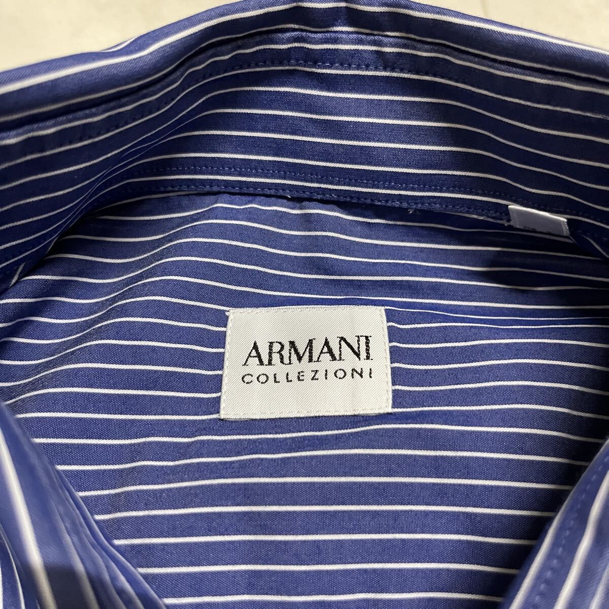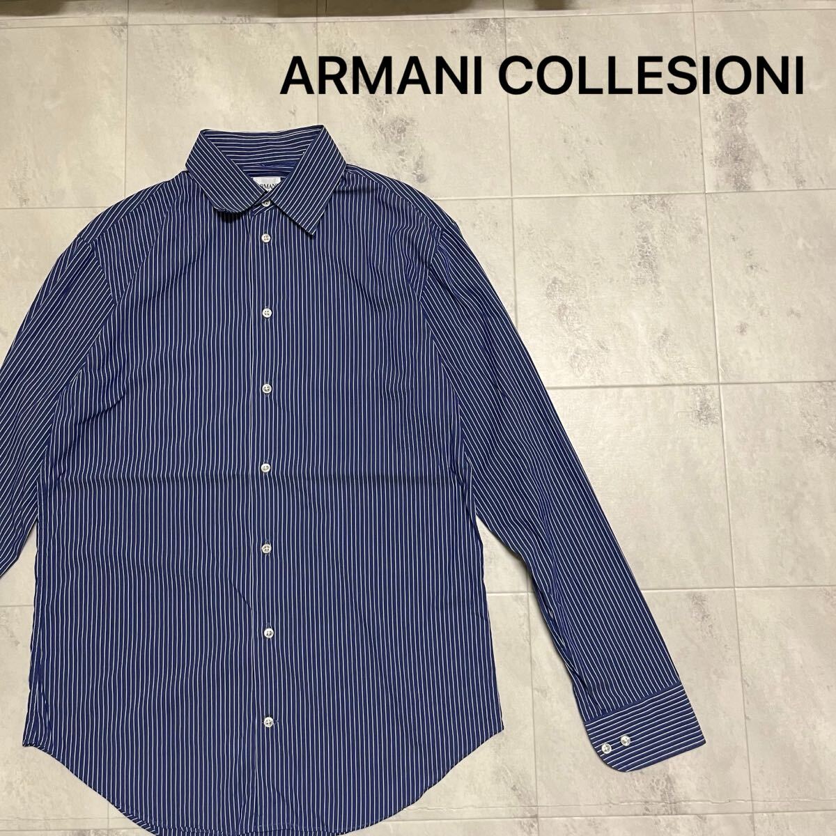 ARMANI COLLEZIONI アルマーニ コレツィオーニ ドレスシャツ 長袖シャツ shirt ワイシャツ ジョルジョアルマーニ セカンドライン ストライプ ブルー サイズ39 15 1/2 L相当 玉mc4116