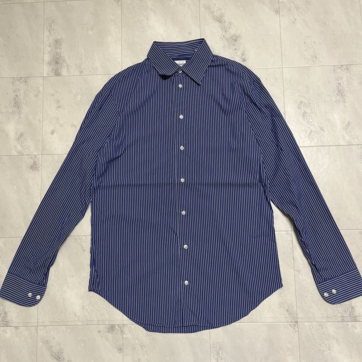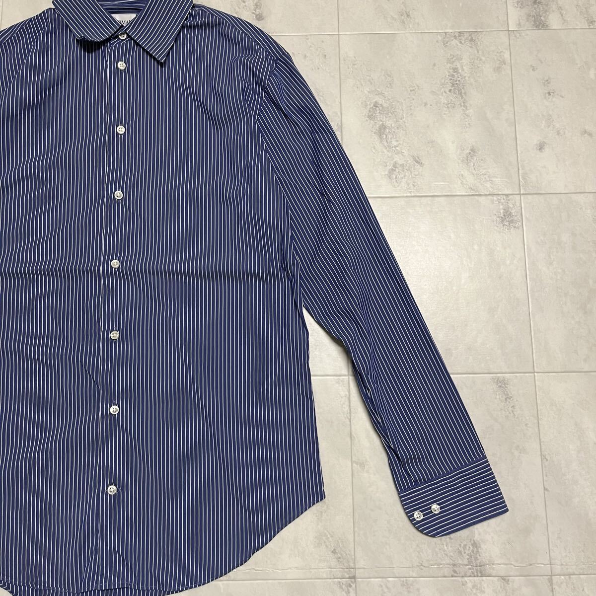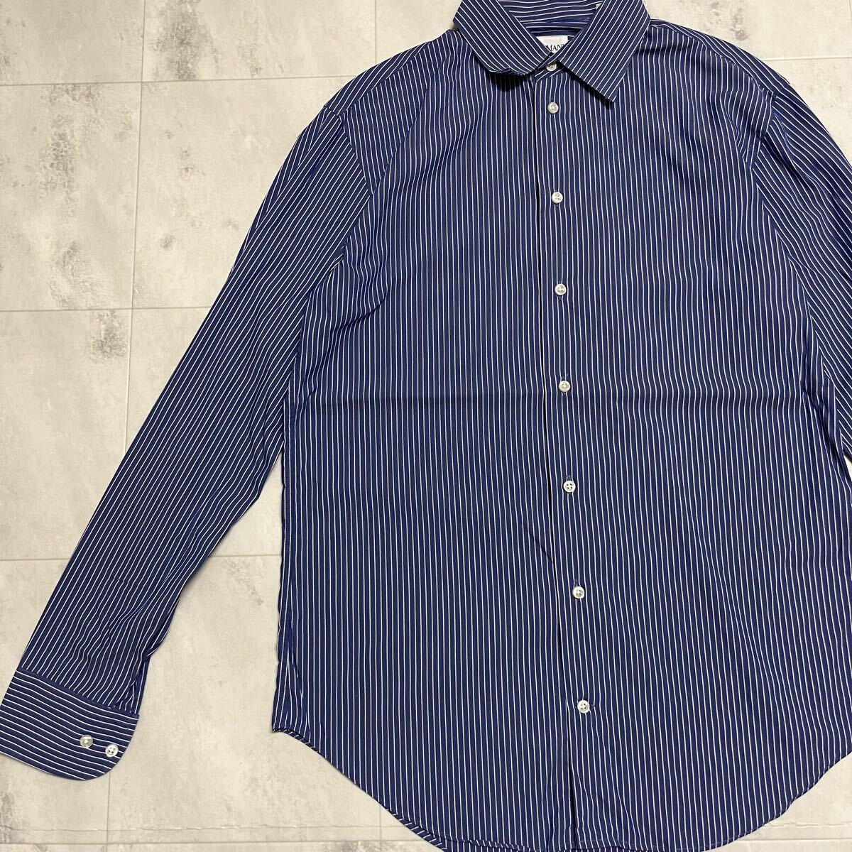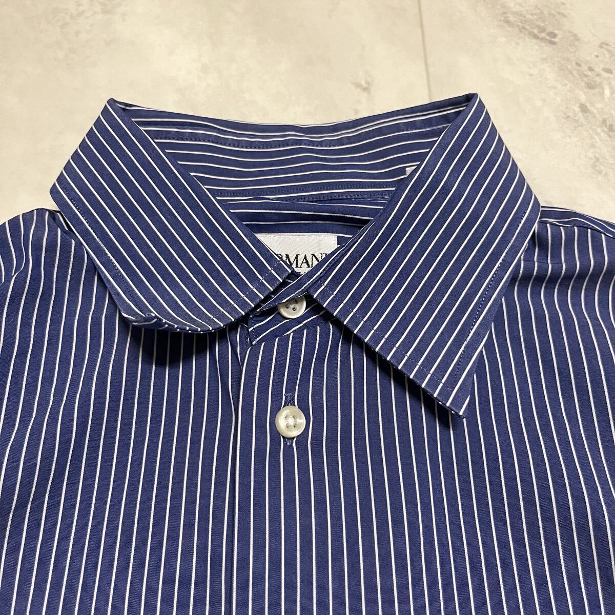 ARMANI COLLEZIONI アルマーニ コレツィオーニ ドレスシャツ 長袖シャツ shirt ワイシャツ ジョルジョアルマーニ セカンドライン ストライプ ブルー サイズ39 15 1/2 L相当 玉mc4116