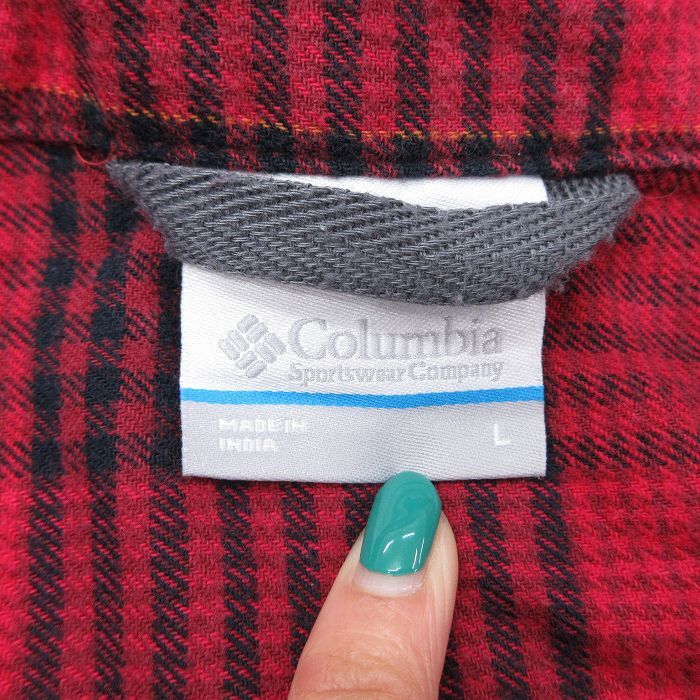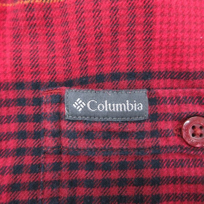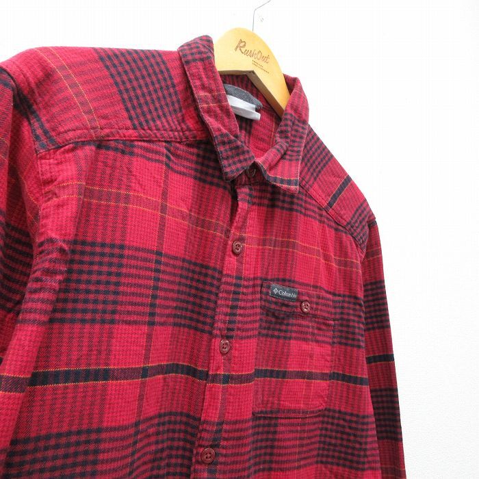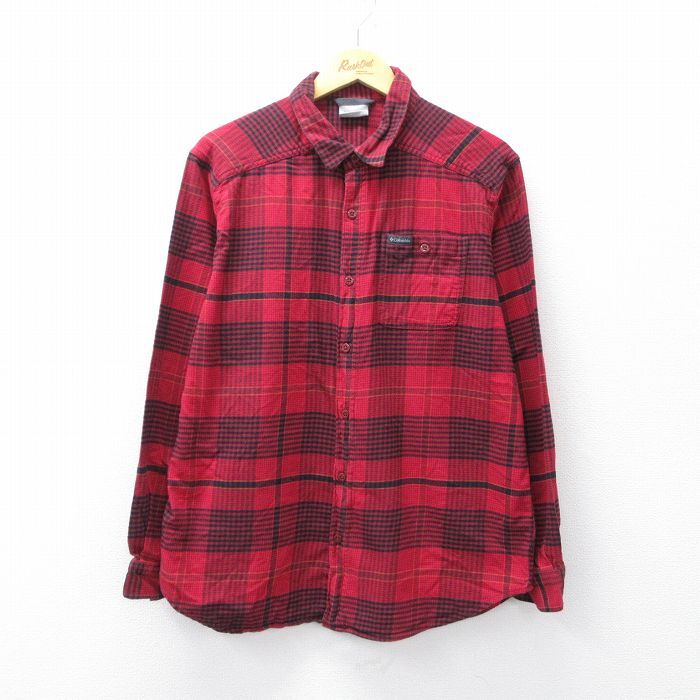 【商品名】 L★古着 コロンビア 長袖 フランネル シャツ メンズ ワンポイントロゴ 赤他 チェック