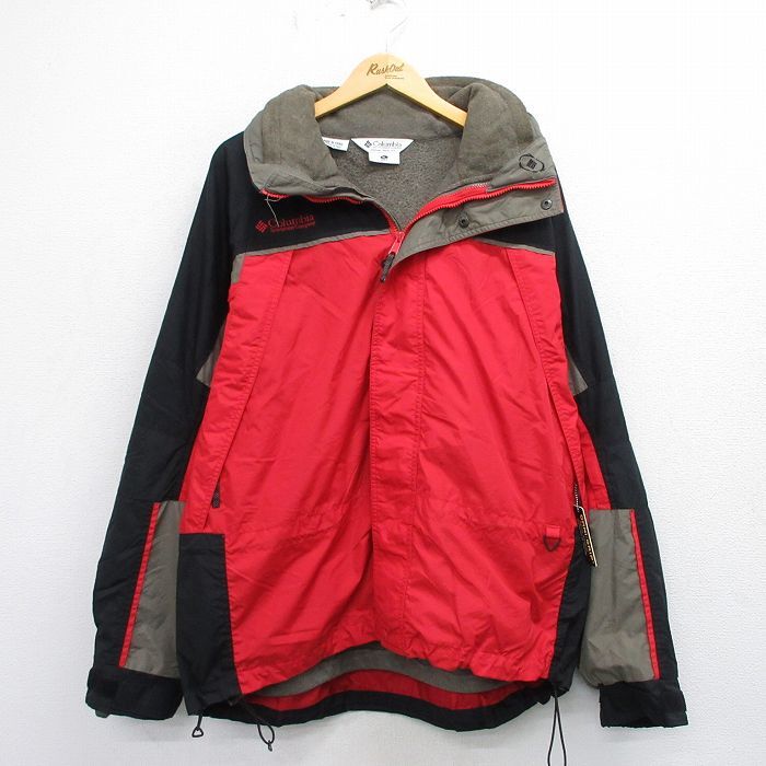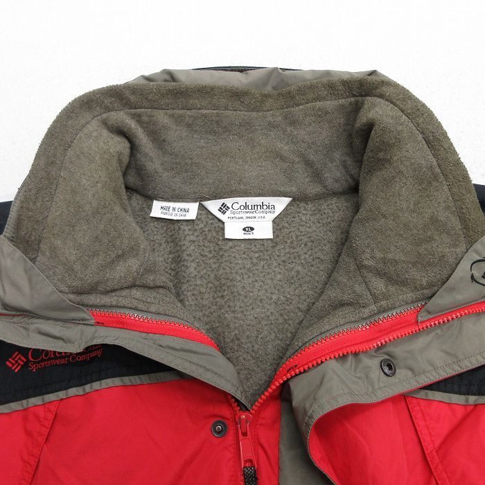 【商品名】 XL★古着 コロンビア 長袖 ナイロン ジャケット メンズ 00年代 00s ワンポイントロゴ Fire Ridge 大きいサイズ 赤他 内側フリース