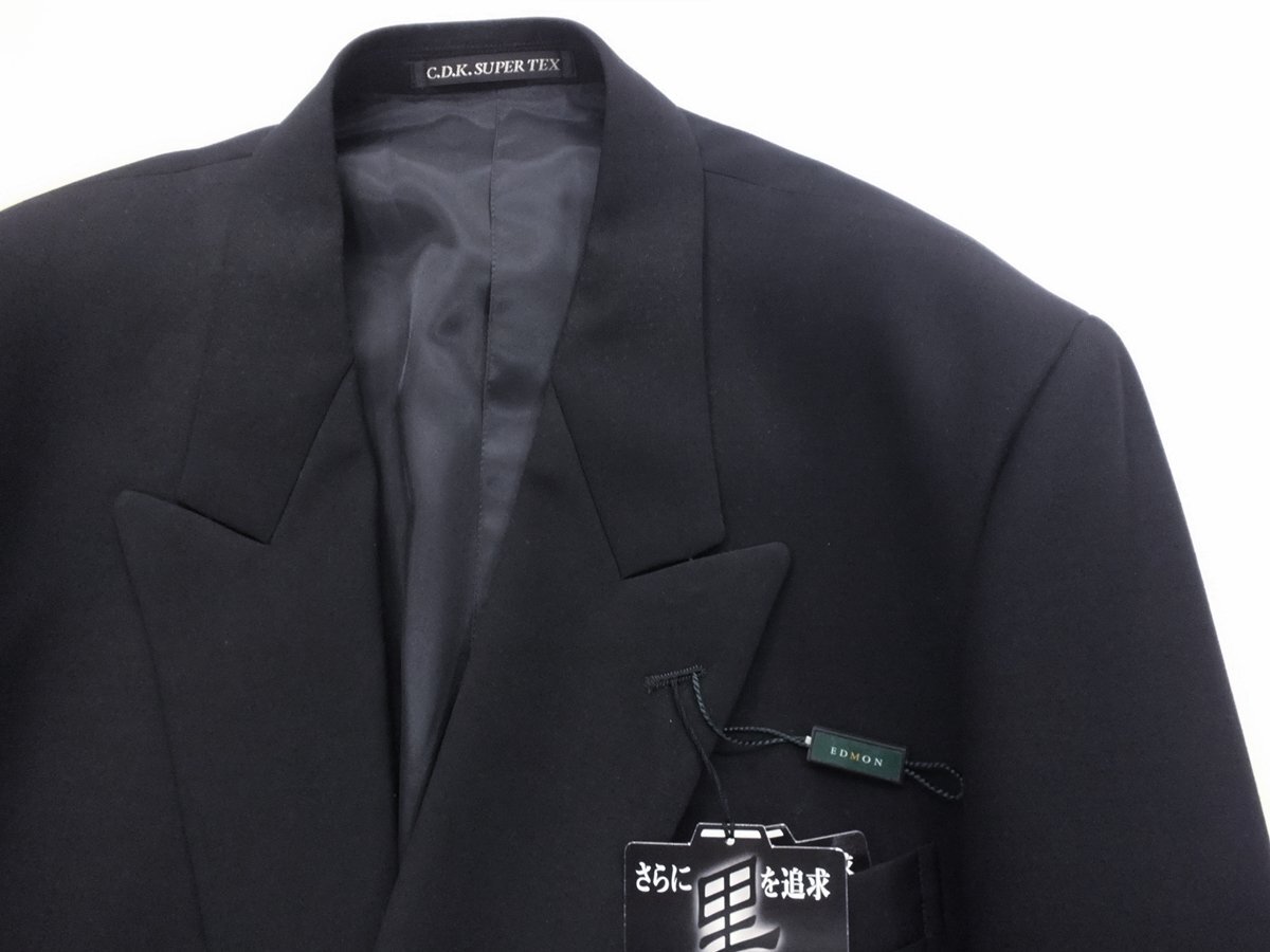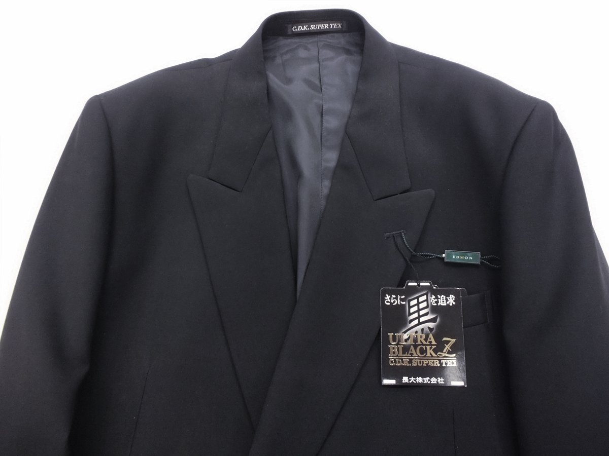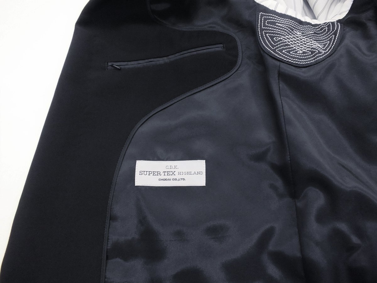特色 ・長大毛織の高級素材SuperTex使用 ・黒を極めたウルトラブラック ・上着裏は本台場付き 【仕様】4釦1掛けダブル秋冬(スリーシーズン)礼服 【サイズ】 AB5(胸回96cm・腰回86cm・身長170cm) 【シーズン】スリーシーズン 礼服 【上 着】4釦ダブル ノーベンツ仕様 【裏素材】ポリエステル100% 【パンツ】アジャスター機能付き(前後に約12㎝調節可能)膝裏付きワンタック仕上げ。 【縫製】日本のアパレルメーカーの企画により中国で生産。 詳細な寸法 上着:胸囲114・胴廻り102.5・着丈72.5・肩幅48.8・袖丈59.5 パンツ:ウエスト86・股上26.5・股下89・渡り幅34・膝巾24.8・裾口22.4 | ||||
