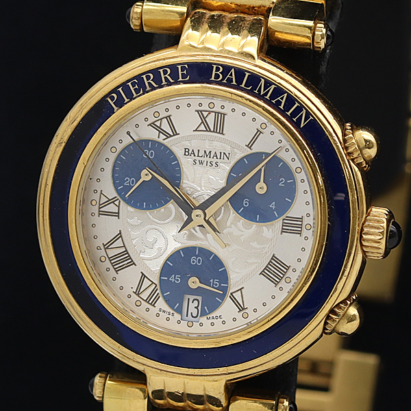 1円 稼働 バルマン クロノグラフ 5991 QZ シルバー文字盤 メンズ腕時計 3835000 9BJY SMZ
