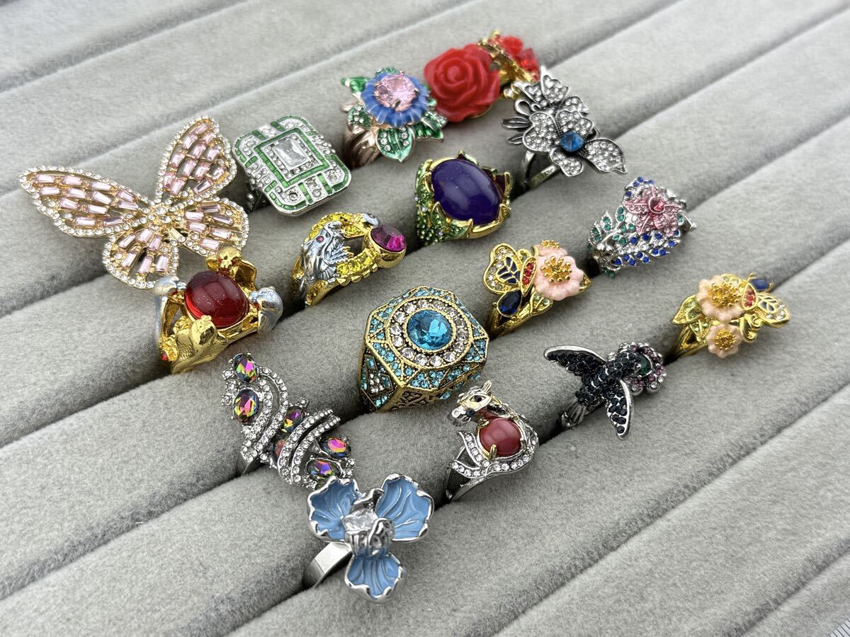 天然石、ジルコニア 、カラーストーン、色ガラス、ゴールド、シルバー、ステンレス、真鍮など様々です。