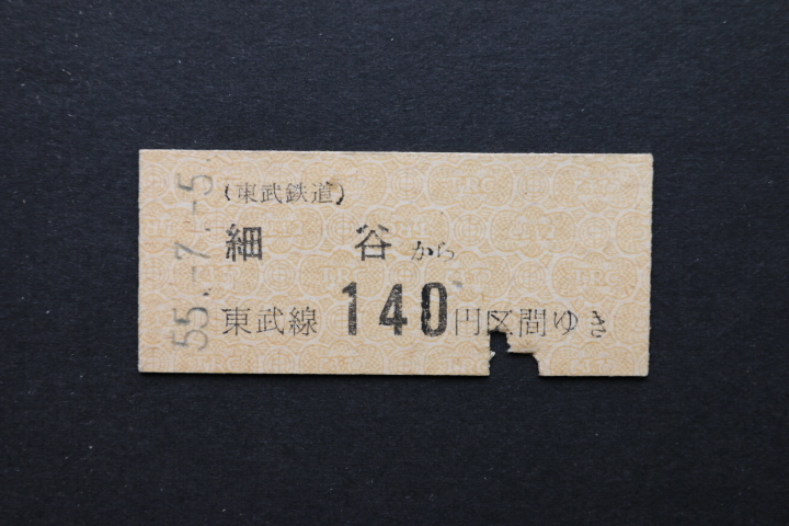 東武鉄道 乗車券 細谷から 140円区間ゆき