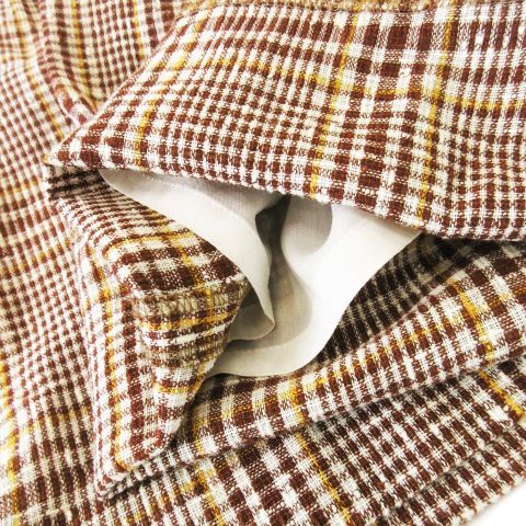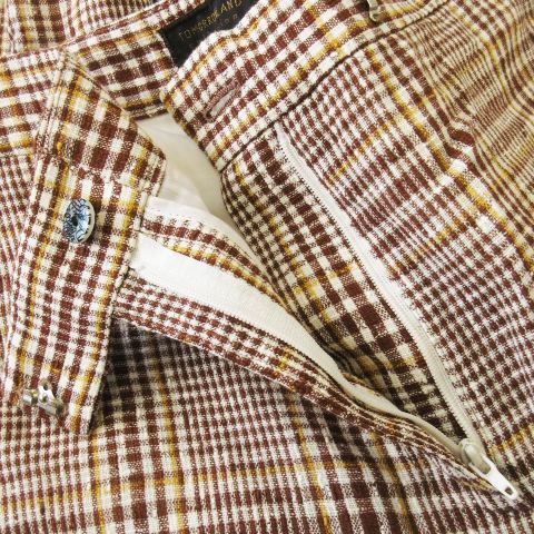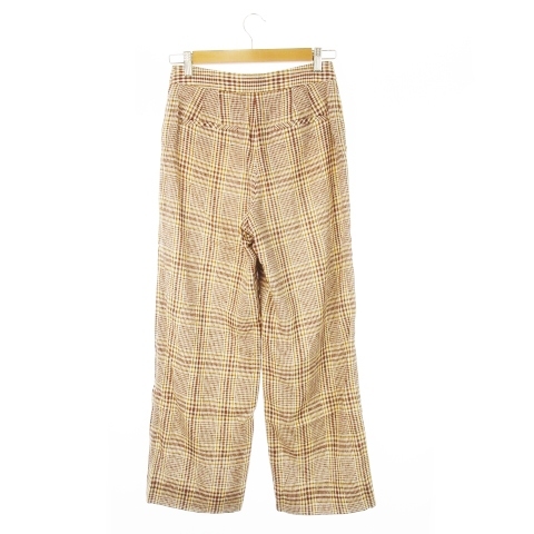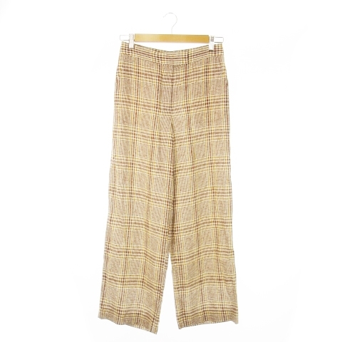 トゥモローランドコレクション TOMORROWLAND collection パンツ スラックス ストレート シャリ感 麻 リネン混 チェック 36 S 茶