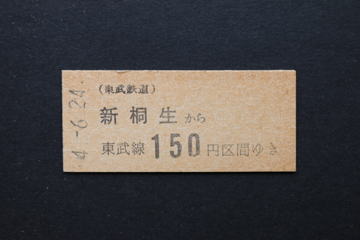 東武鉄道 乗車券 新桐生から 150円区間ゆき