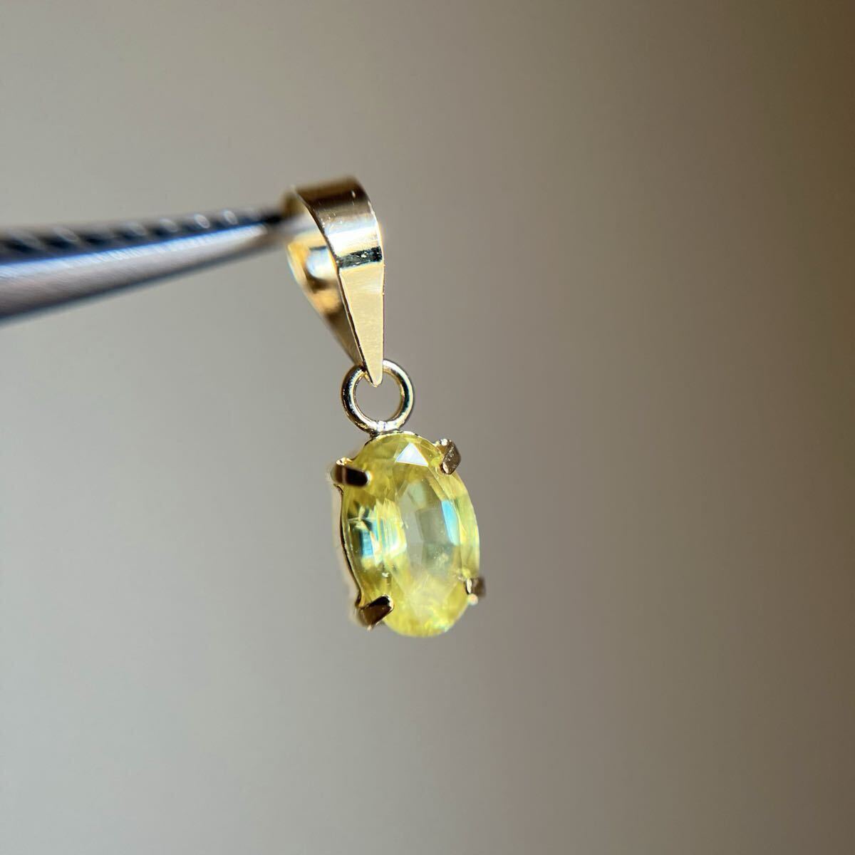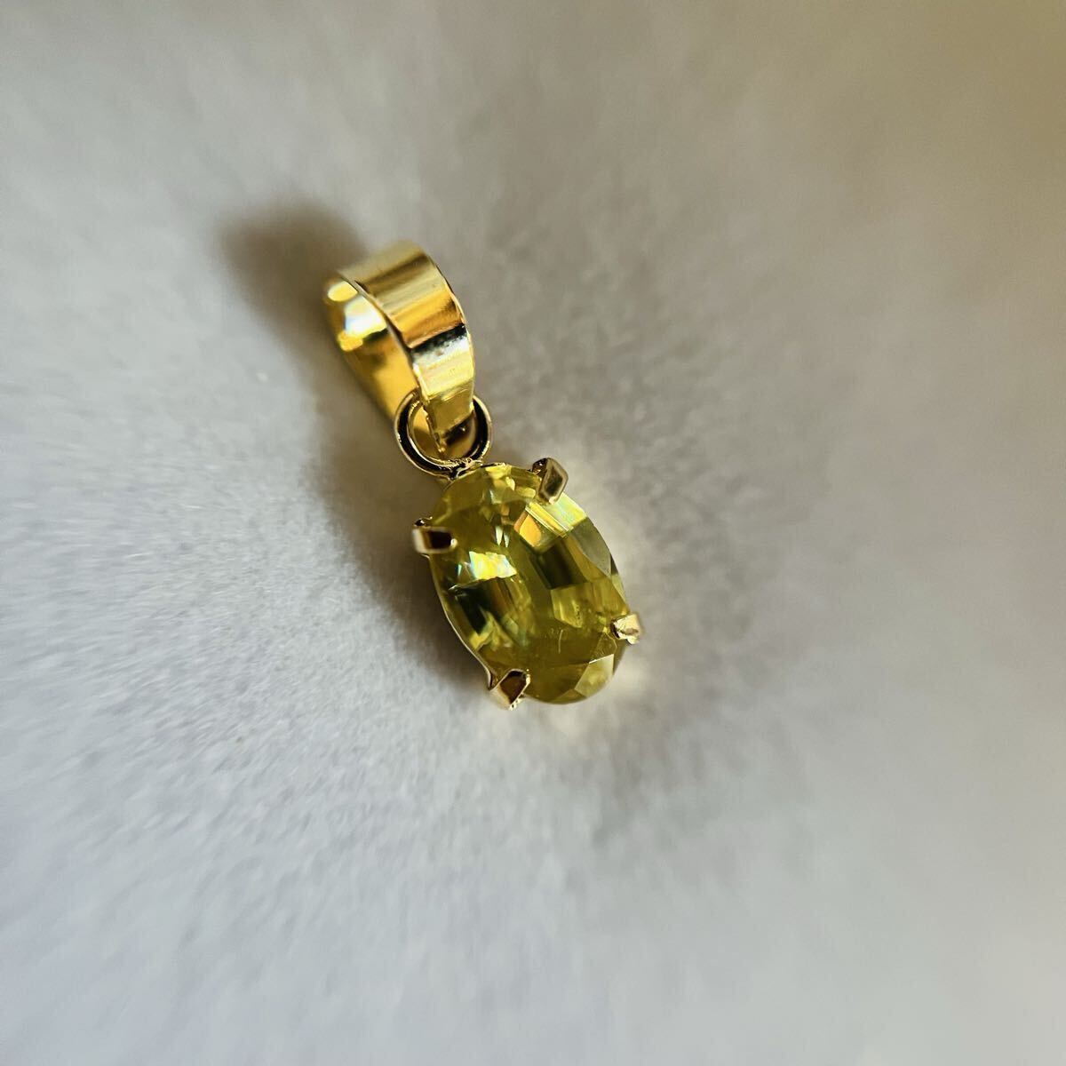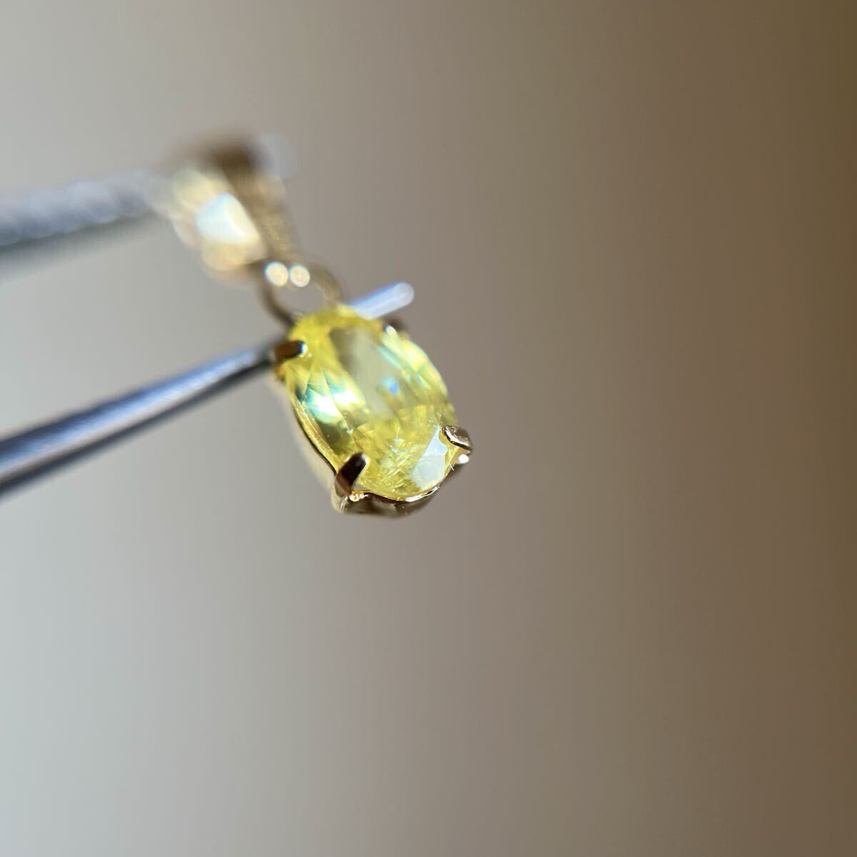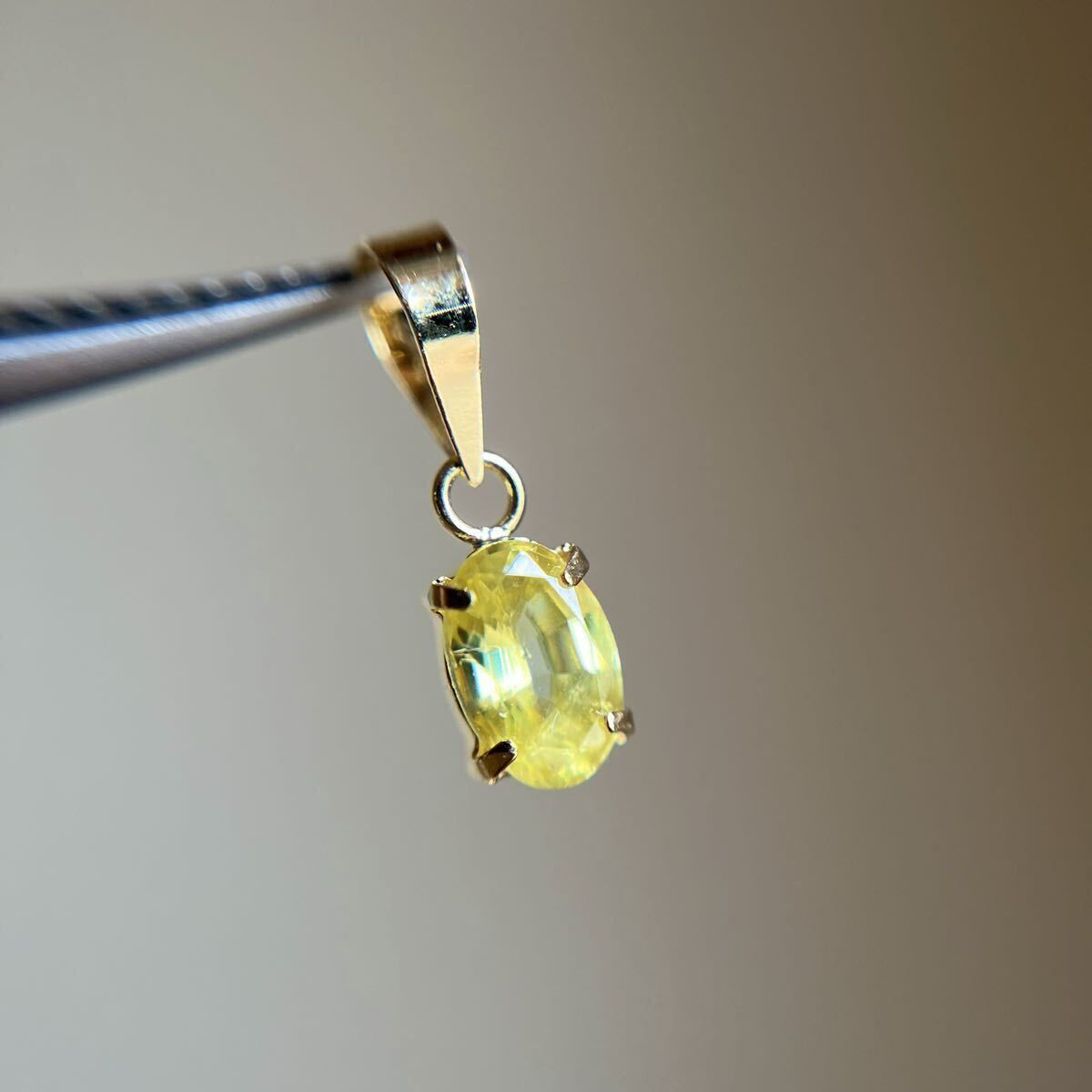 鮮やかな輝きと虹色のファイアが特徴の天然石スフェーンを使用した、オーバルカットのペンダントトップです。