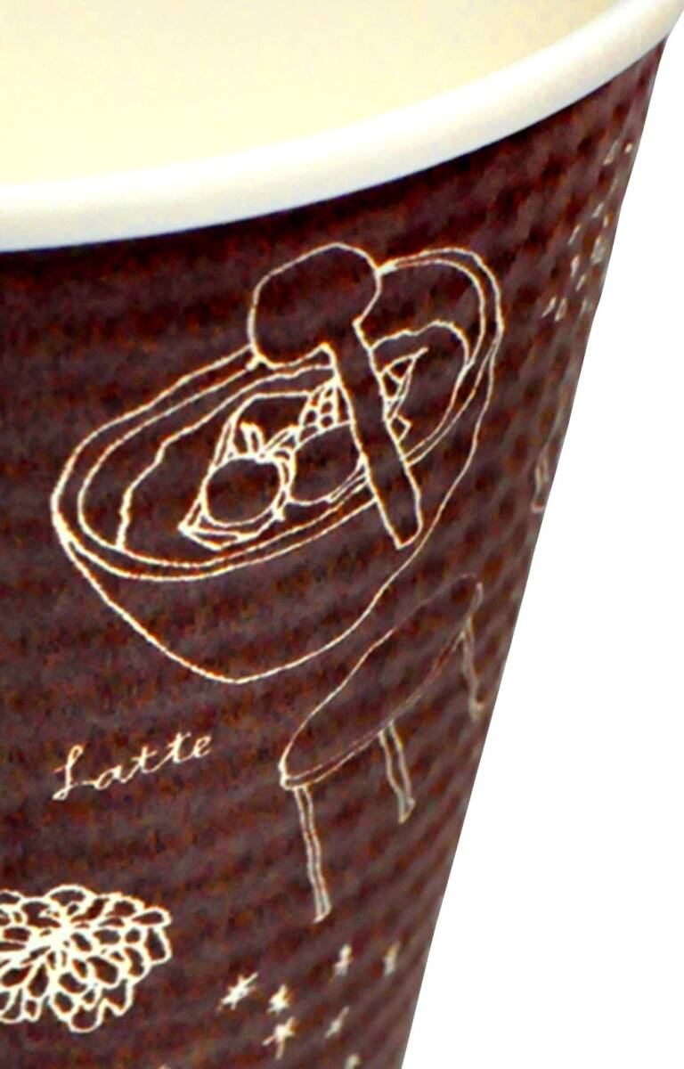 ・ 温かいお飲物から冷たいお飲物に対応した飲料用簡易コップ。・ エンボス加工(凸凹模様を彫った押し型で強圧し,浮き出し (エンボス) 模様を作る加工法)した紙製コップ。・ 中層にエアー層を形成し、断熱性を高め、滑りにくくした新感覚の紙コップ。・ 340ml容量、カフェ感覚のかわいいガラ、パーティーなどの人寄せなどに。・ 紙製なので温かいお飲物にも対応。・ アルコール飲料の長時間のご使用はモレる場合あり。・ 冷たいお飲物を入れると結露によりコップが柔らかくなりますが、モレではございません。