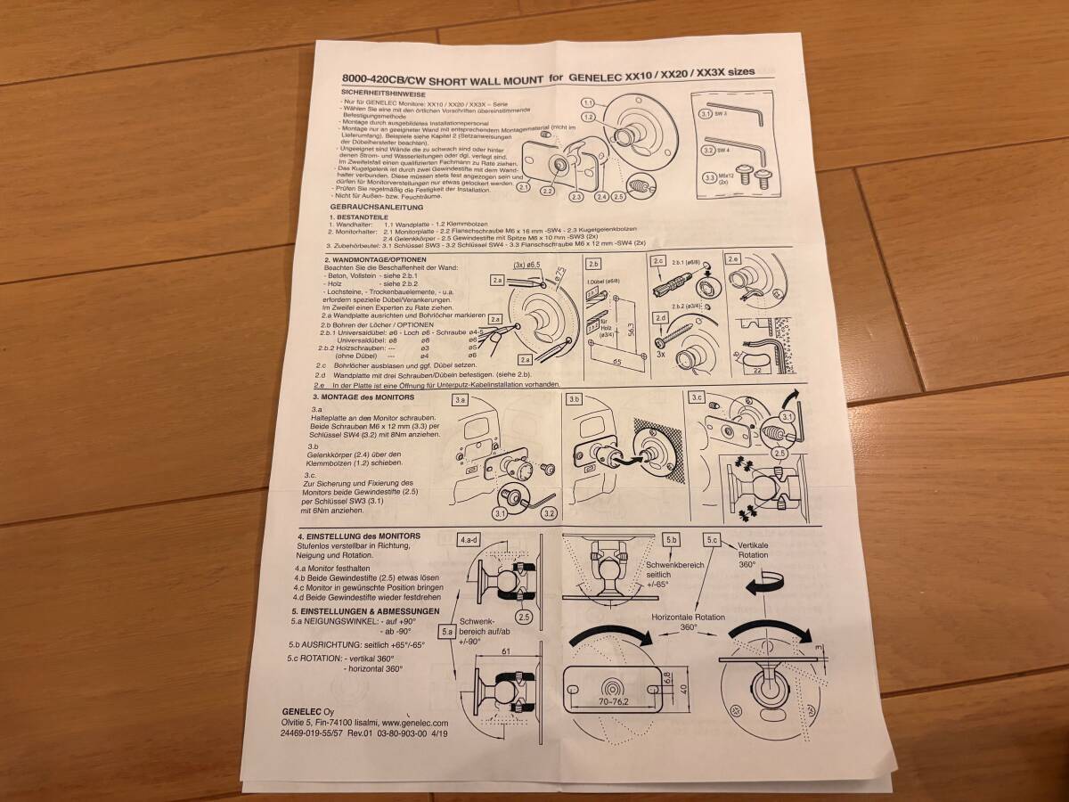 Genelec 8000-420CW (K&M 24469W) スピーカー ウォールマウント 2個セット 未使用品