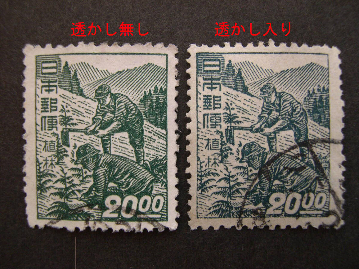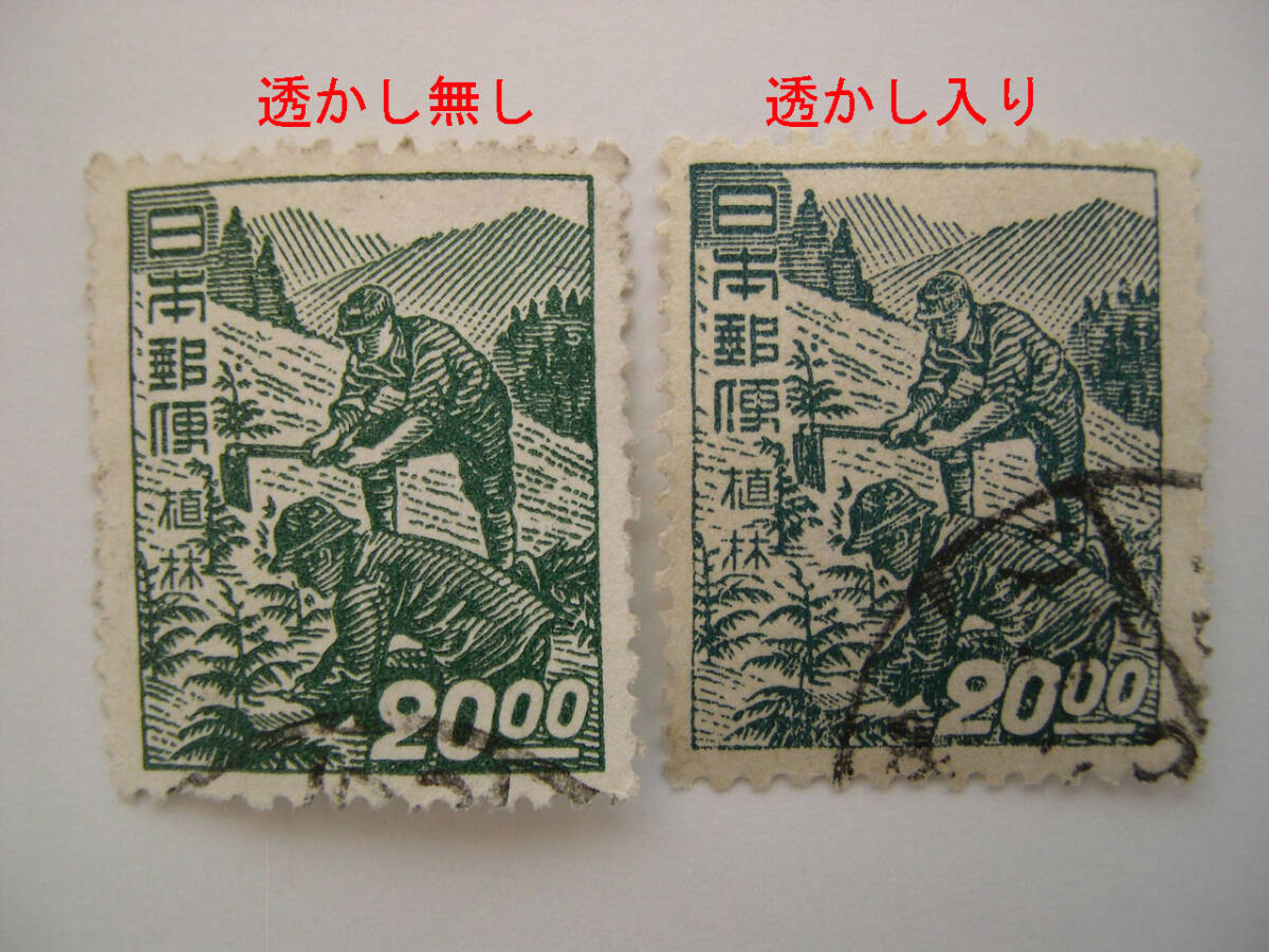 日本普通切手 植林 すかし無し&すかし有りセット 使用済み