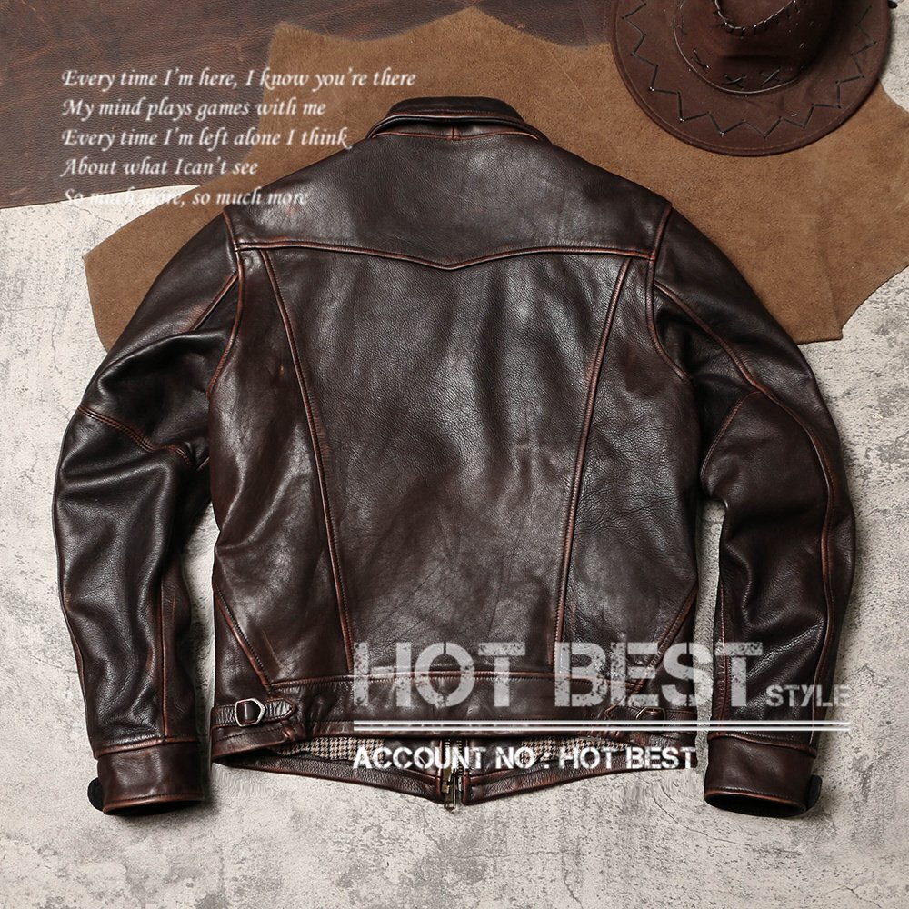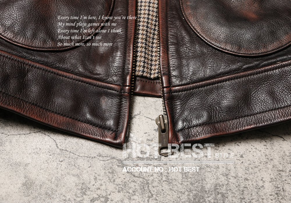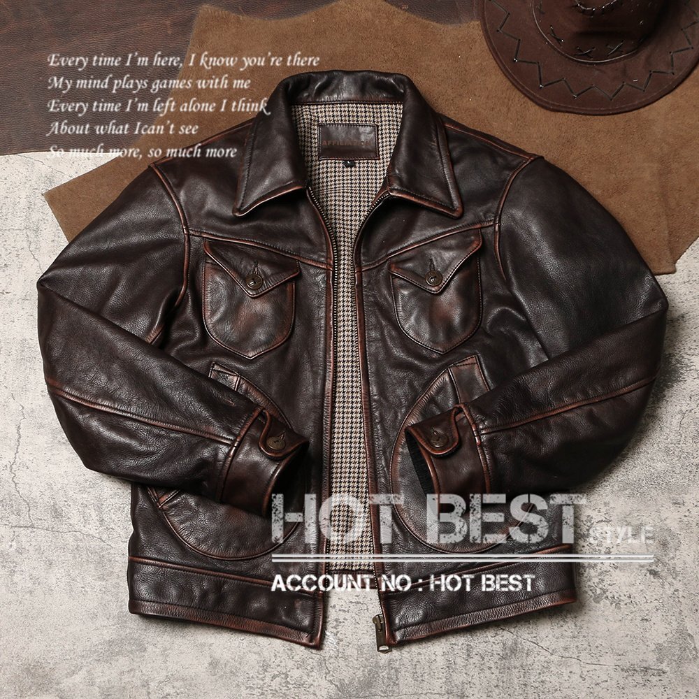 1.3mm 茶芯カウハイド 復刻40's アビエイタースタイル レザージャケット メンズ 革ジャン ウォッシュ加工 ヴィンテージ 牛革 Y1576/4XL