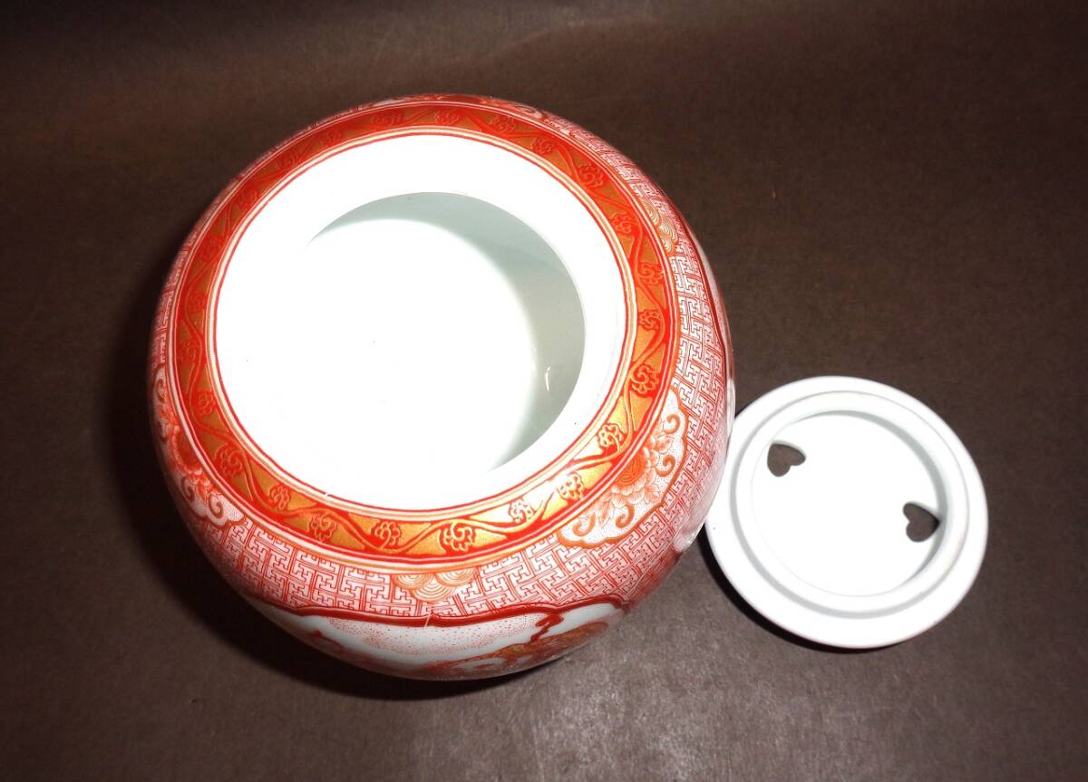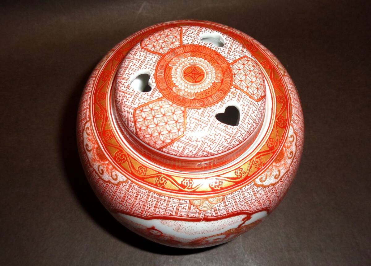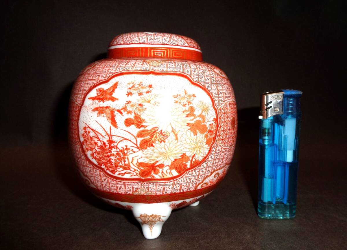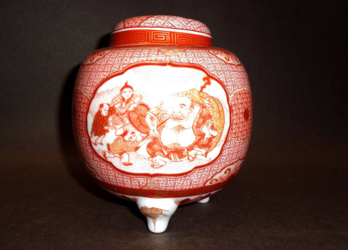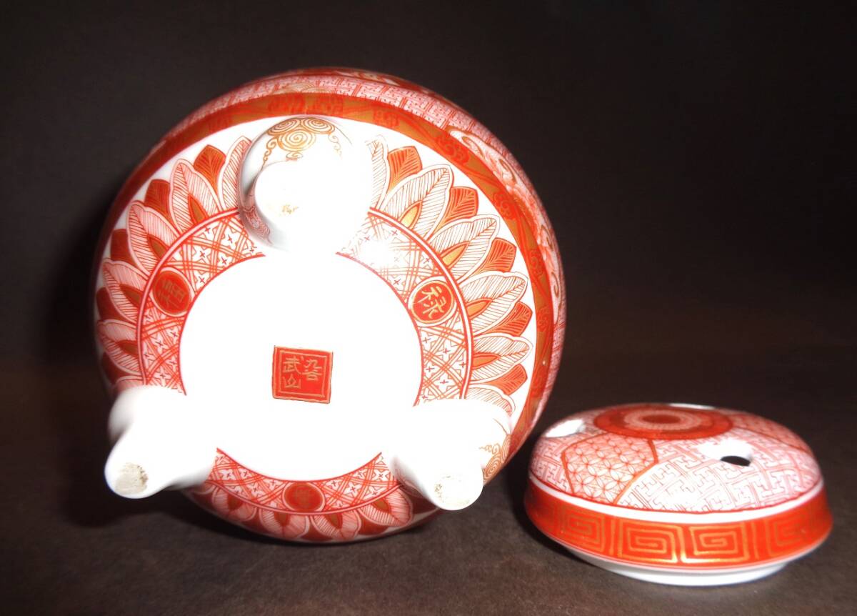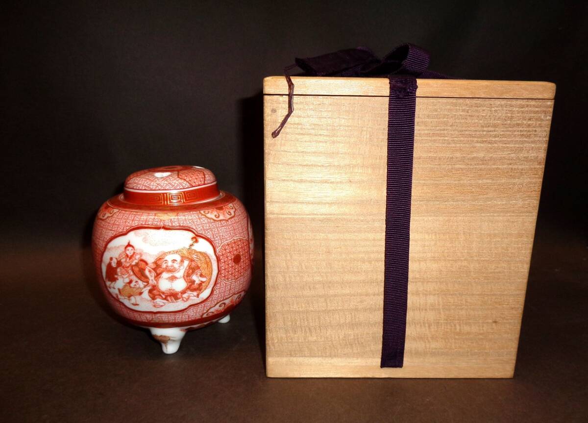 福島武山作 赤絵細描三つ脚香炉 九谷焼