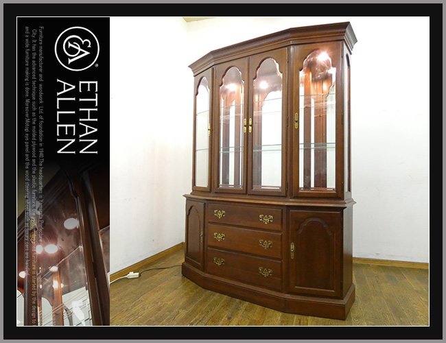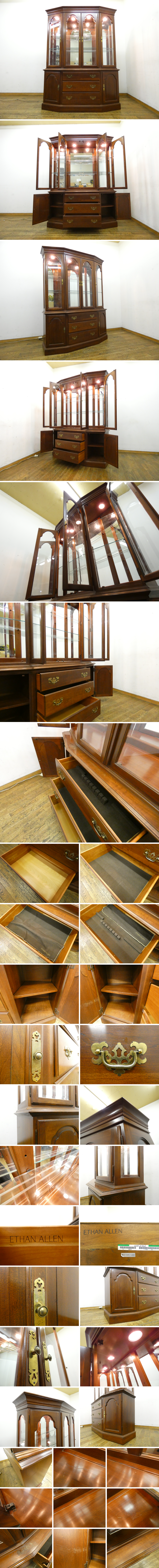 ◆RN16◆美品◆USA◆ETHAN ALLEN イーセンアーレン◆GEORGIAN COURT◆キュリオケース◆飾り棚◆キャビネット◆リビングボード◆照明付