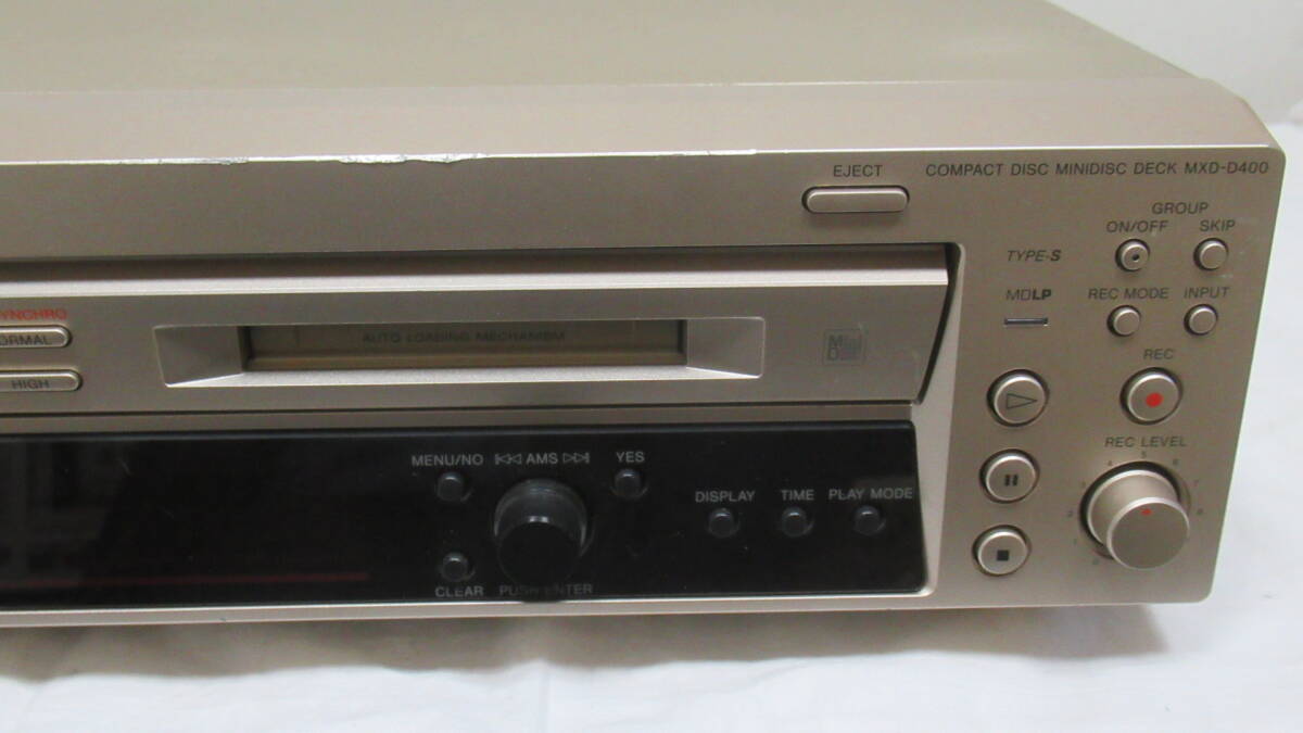 ◆商品説明◆ | [管理番号:A-297] ・SONY MXD-D400 CD/MDデッキ 【外観:程度良】 【状態:ジャンク】 ・CDは再生、早送り、巻き戻し、選曲OKでした。 ・MDは入りません。 ・キズ、スリキズあります。画像でご確認ください。 他にも画像が御座いますので宜しければご覧になってください。 SONY MXD-D400 |