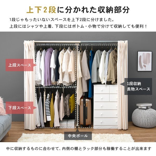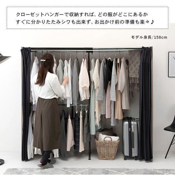 現在ご覧の商品ページはグレーのご購入ページとなります。 ヤフオクの仕様上単一ページに複数バリエーションを掲載することができませんので、他バリエーションが希望の場合は別ページでご購入お願い致します。 スペースに合わせて伸縮可能なクローゼットハンガー。 カーテン付き。 配達業者を指定いただくことはできません。 北海道/沖縄/離島のお届けに別途中継料金が発生します。 ※別途送料が発生する場合は後ほどご連絡させていただきます。 当店は正規店です。 タイミングによっては在庫切れの場合があります。